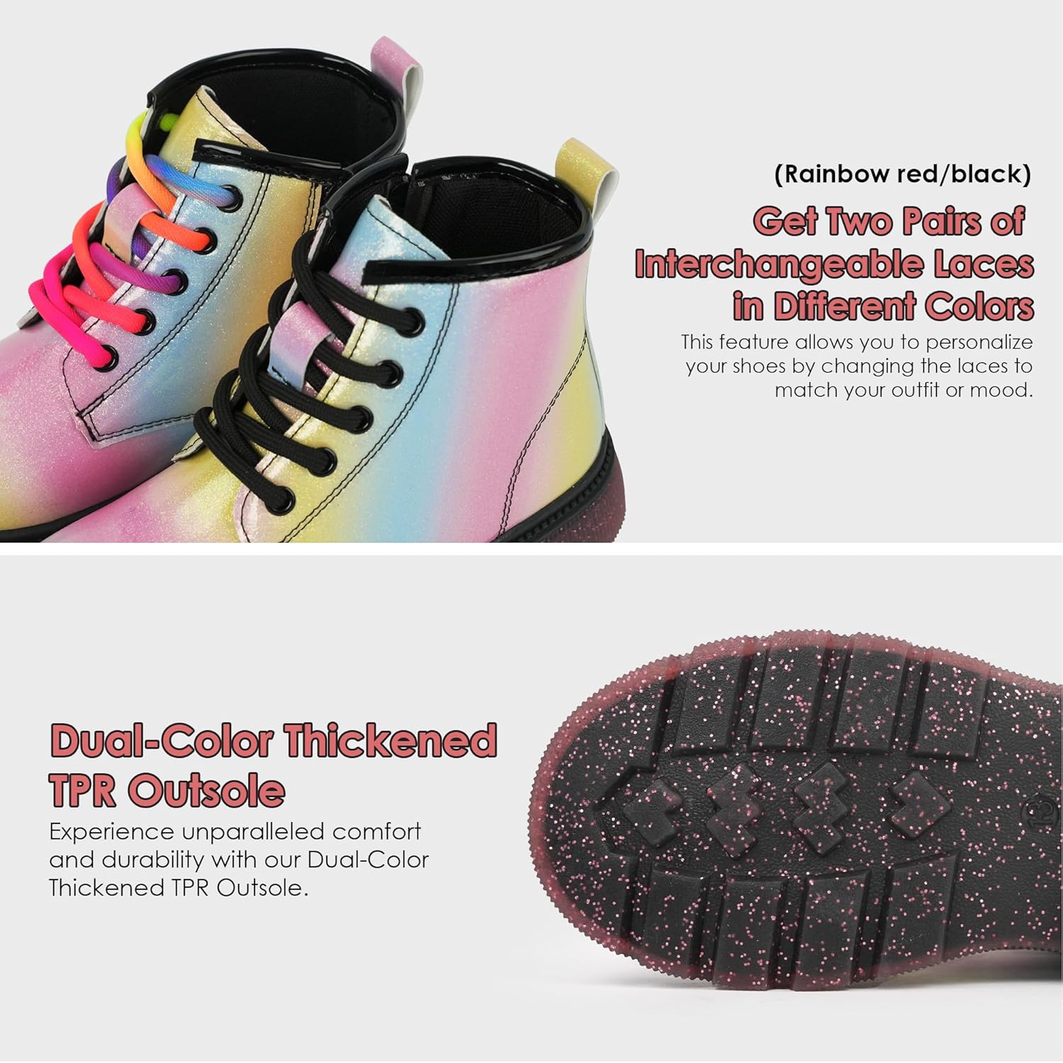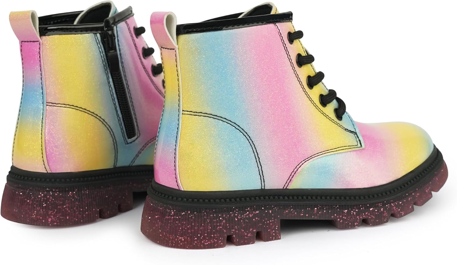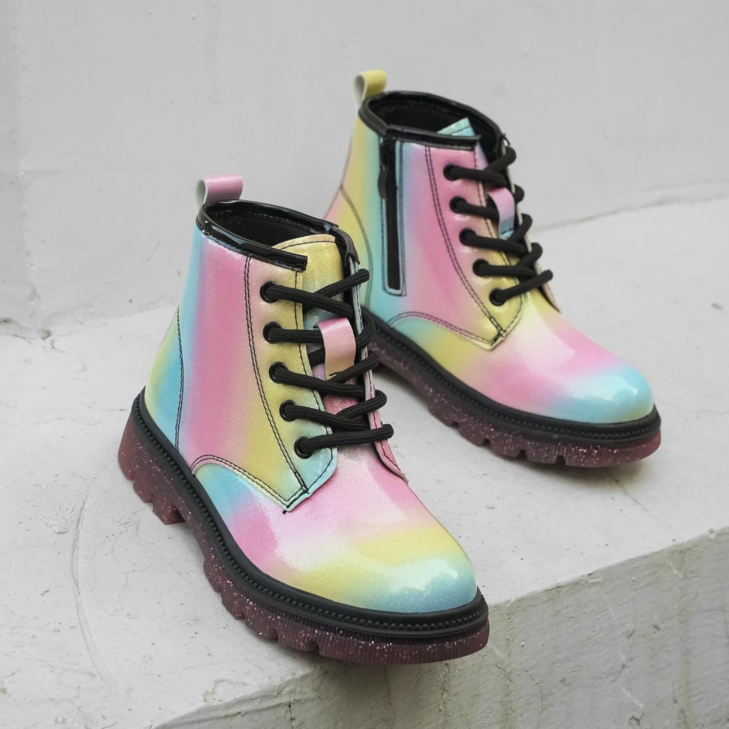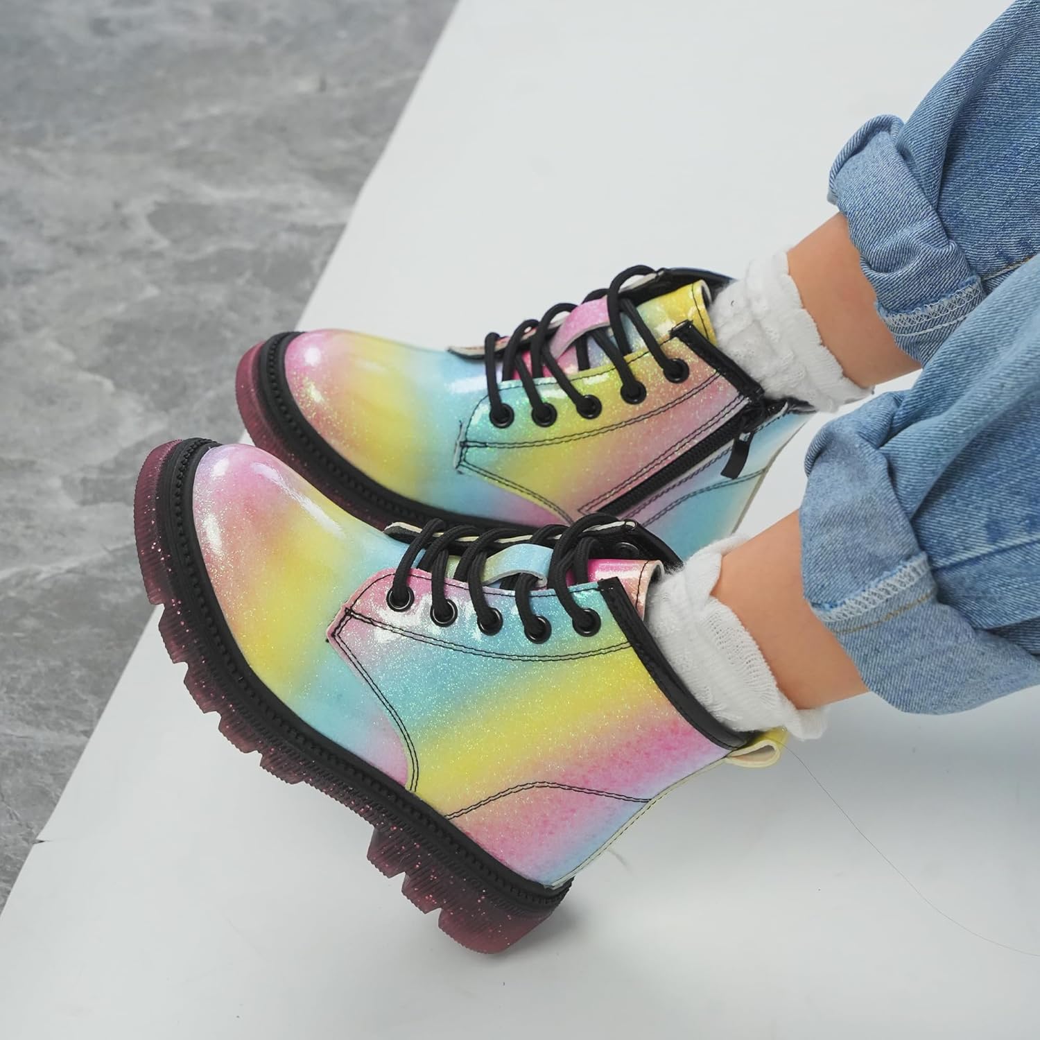 Детские ботинки JABASIC для девочек, ботинки на шнуровке с блестками, рабочие боевые ботинки, Regenbogen