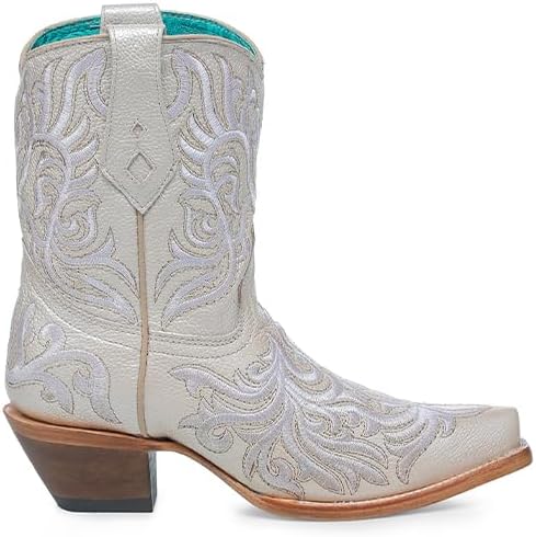 Ботинки Corral Boots Womens Ankle Embroidered Snip Toe Pull On Casual Boots Ankle Mid Heel 2-3" - White