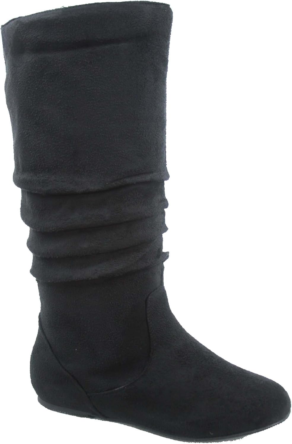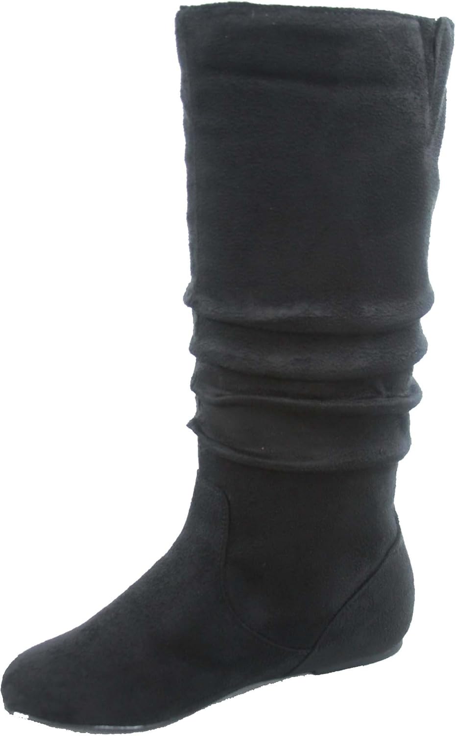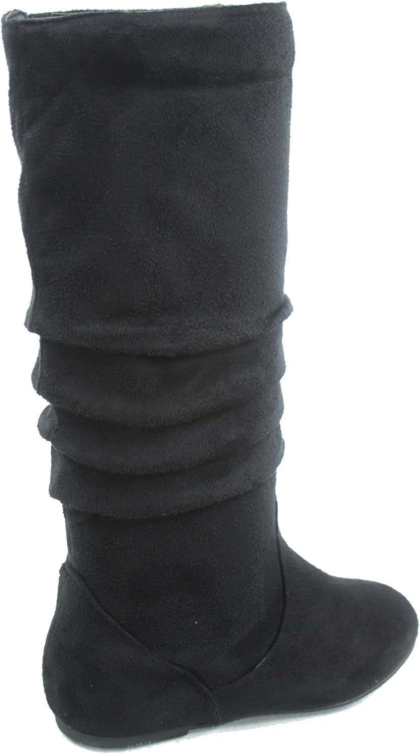 TOP Moda Data-1 Women's Shoes Cute & Comfort Round Toe Flat Heel Slouchy Mid Calf Boot, Black