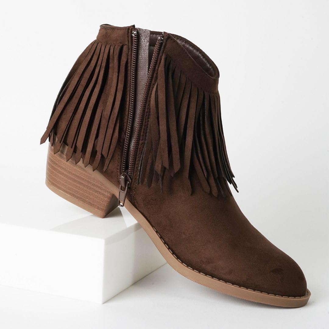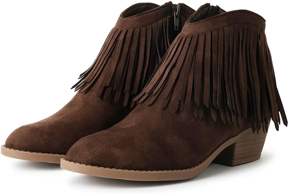 Ботинки J. Adams Marrow Ankle Boot - Western Fringe Cowboy Low Heel Bootie, Chocolate Sude 5 797₽