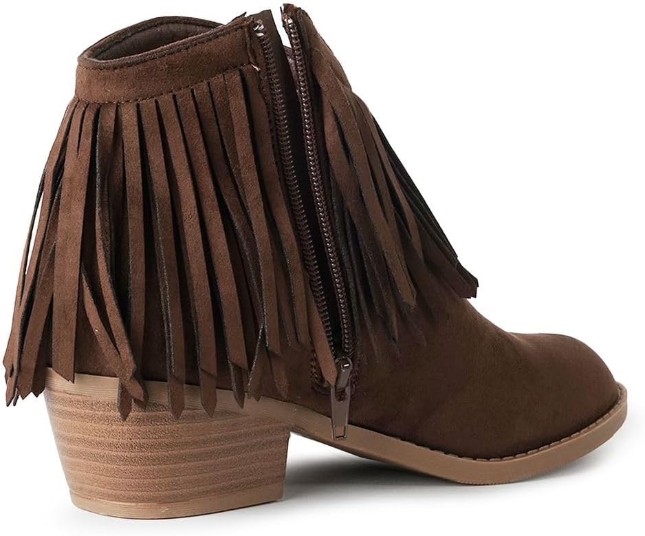 Ботинки J. Adams Marrow Ankle Boot - Western Fringe Cowboy Low Heel Bootie, Chocolate Sude