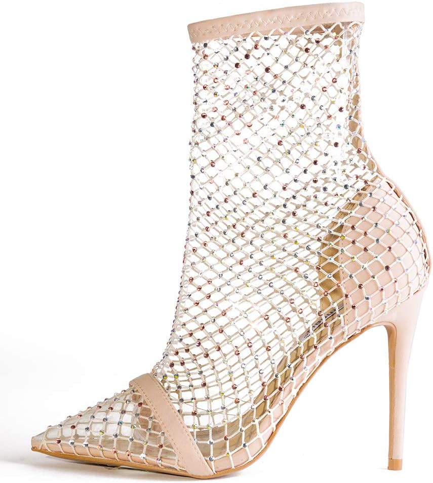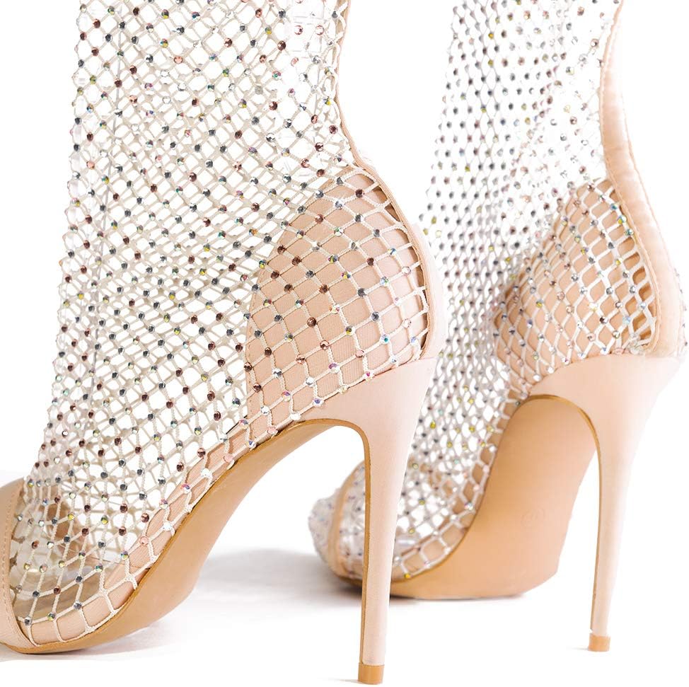 Cape Robbin Florence Stiletto High Heels for Women, Rhinestone Sparkle Fishnets, Nude