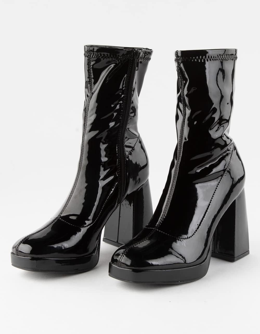 Женские ботильоны на массивном каблуке с эластичной платформой BAMBOO, Black Patent
