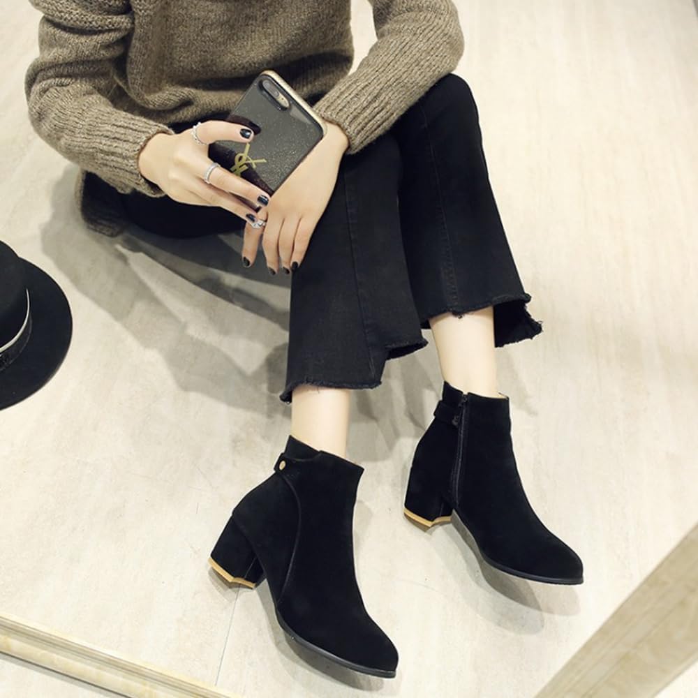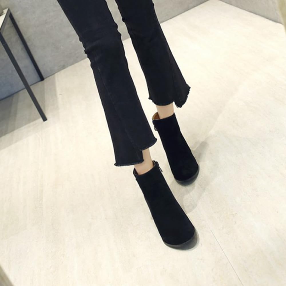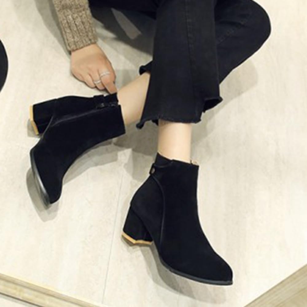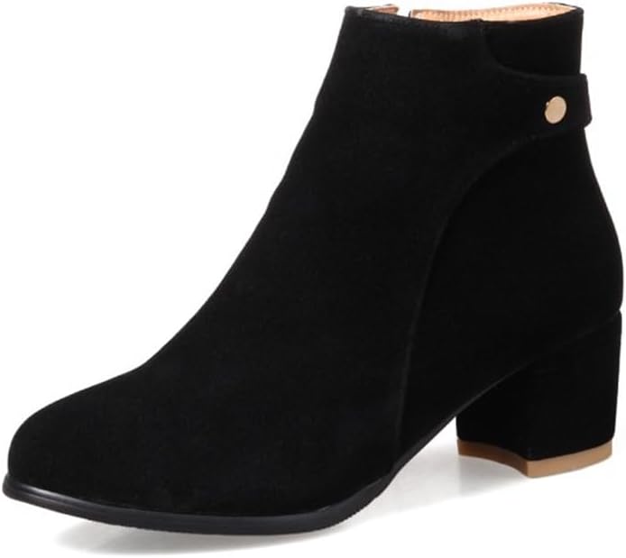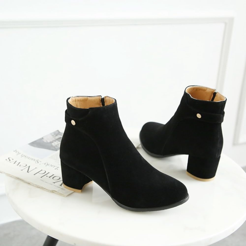 Комфортная посадка: Эти ботильоны на толстом каблуке с замшевой поверхностью оснащены синтетической короткой плюшевой стелькой с высококачественным поролоном с эффектом памяти для дополнительного комфорта. Боковая молния облегчает надевание и снятие.
