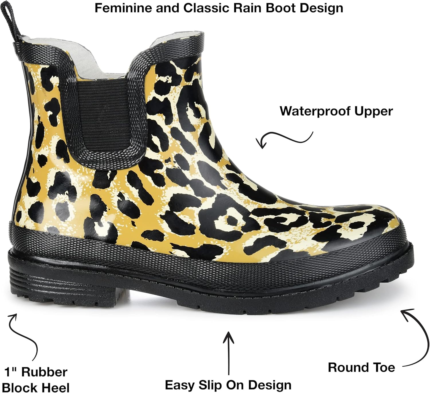 Высота каблука: 1 дюйм. Тип каблука: толстый. Высота платформы: 1/2 дюйма. Высота голенища: 5 дюймов. Обхват верха: 12 дюймов. Ширина обуви: средняя. Тип застежки: без застежки. Форма носка: круглая. Подкладка: ткань. Верхний материал: резина. Подошва: резина. Стелька: с подкладкой. Все размеры приблизительные и измерены на размере 6. Обратите внимание, что размеры могут незначительно отличаться в зависимости от размера.