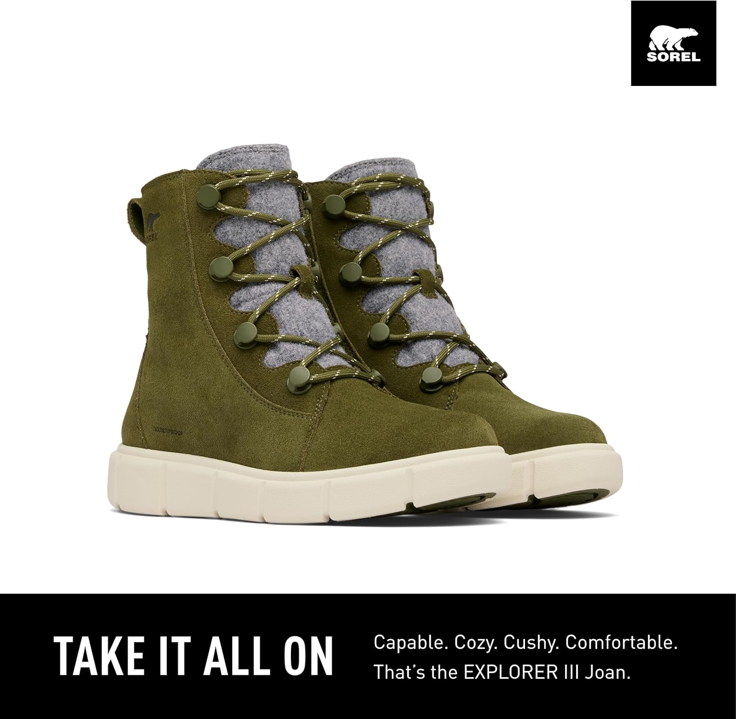 Женские водонепроницаемые ботинки SOREL Explorer III Joan, Utility Green/Chalk