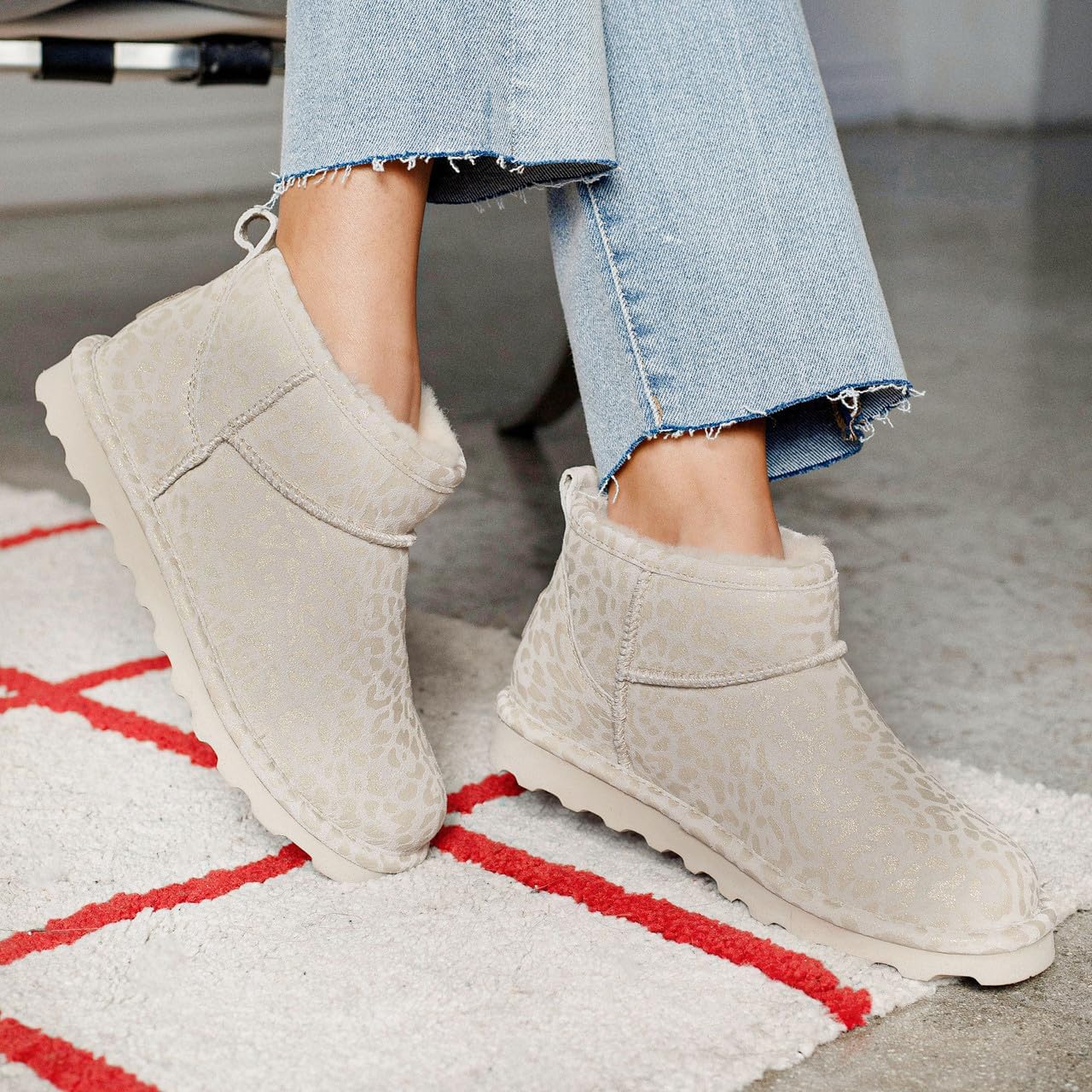 Женские ботинки BEARPAW Shorty Exotic Oat Snake, Winter White Leopard Glitter