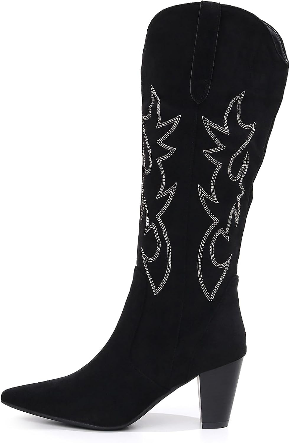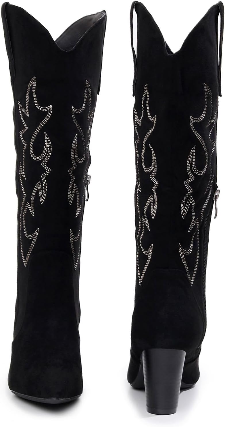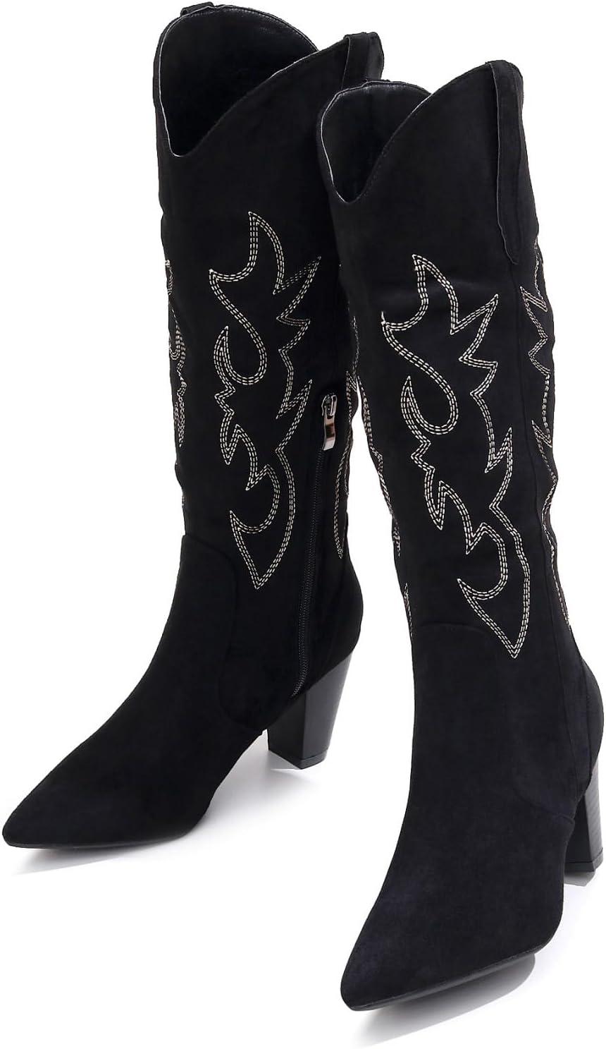 Женские модные эластичные сапоги до колена VenusCelia, Black Suede Embroidery