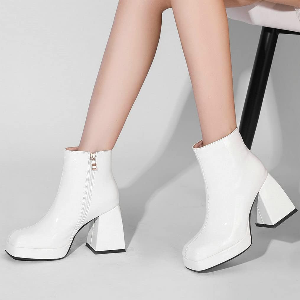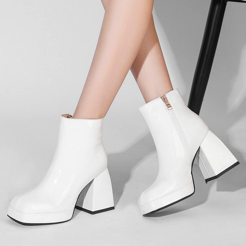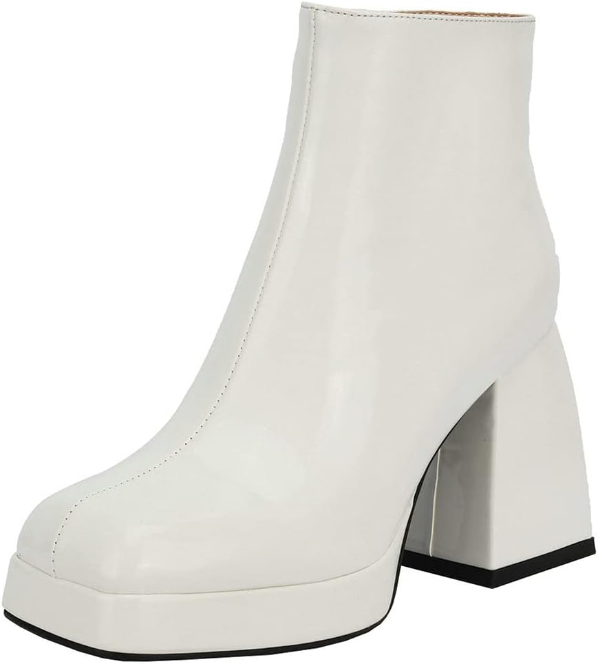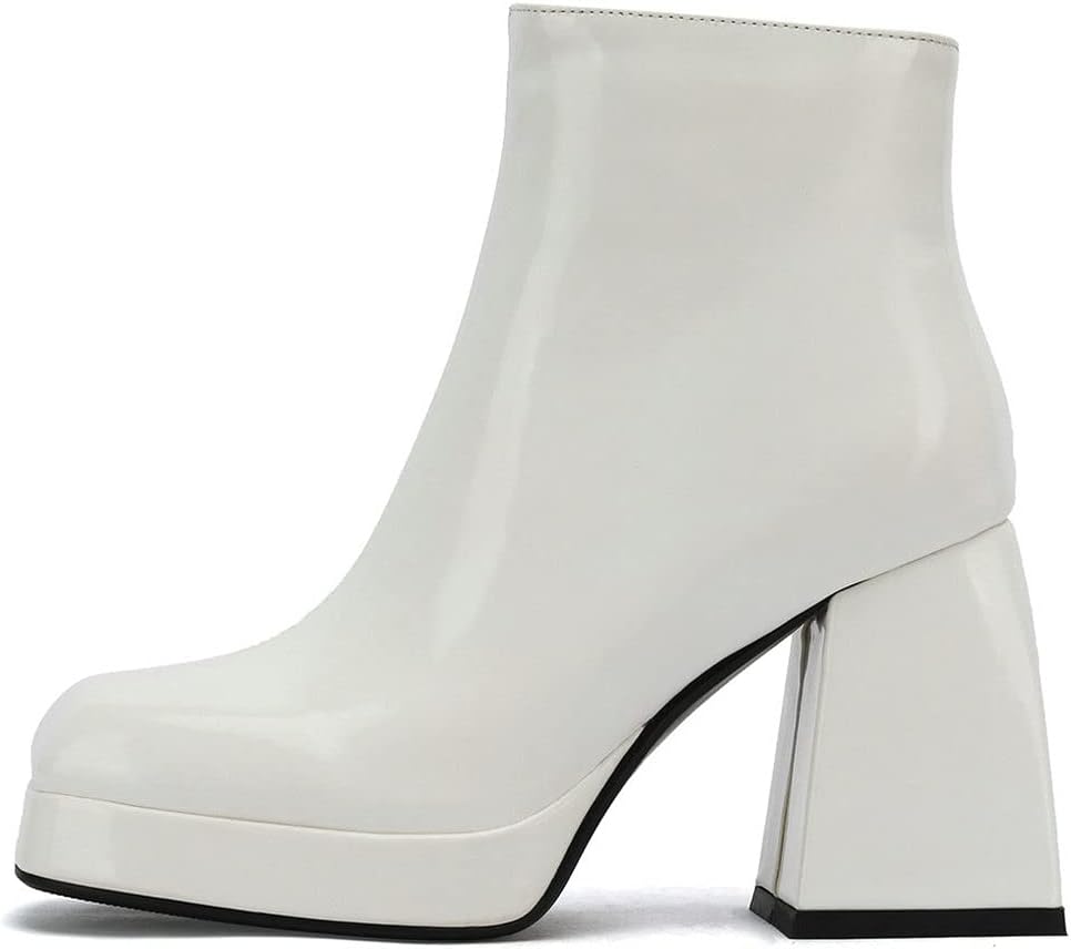 Женские глянцевые ботильоны LUXMAX на массивном каблуке с платформой, White