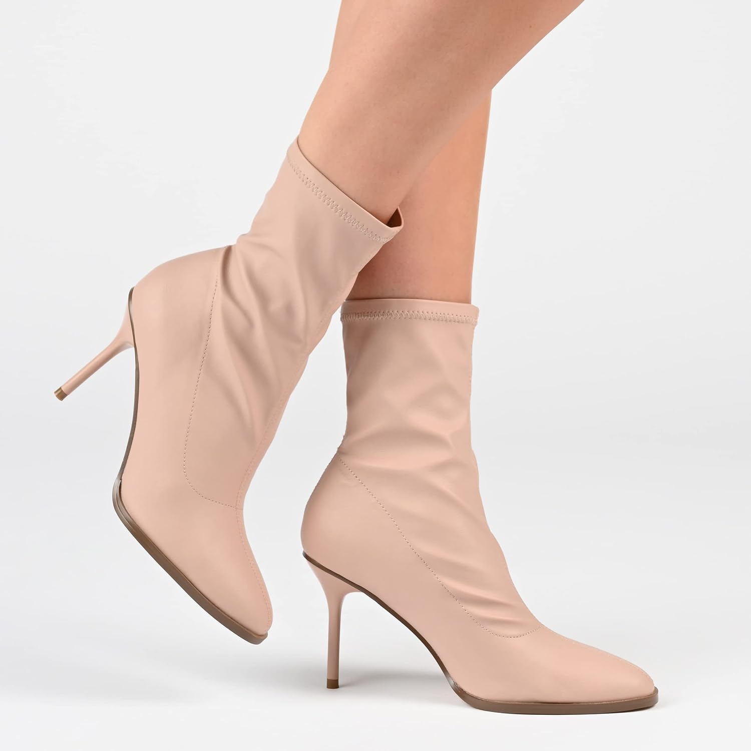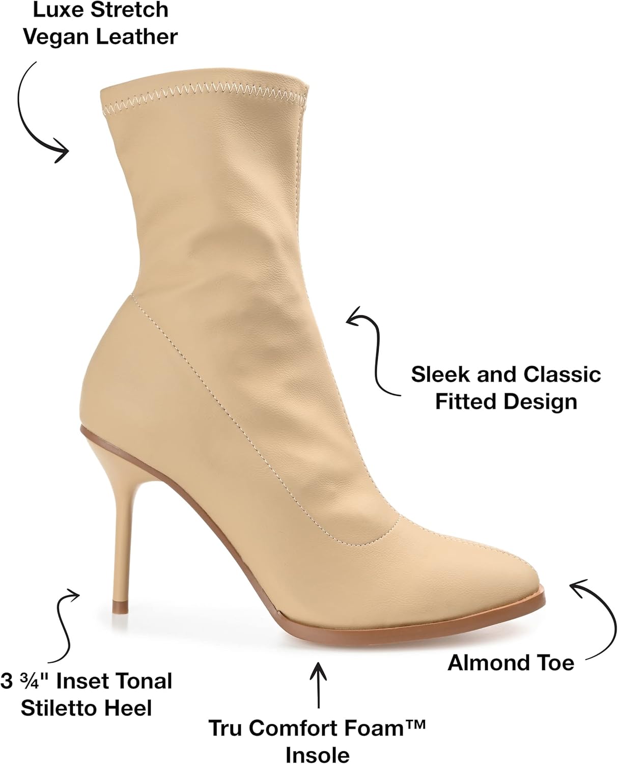 Высота каблука: 3 3/4 дюйма. Тип каблука: шпилька. Высота платформы: плоская. Высота голенища: 6 1/2 дюйма. Обхват верха: 9 дюймов. Ширина обуви: средняя. Тип застежки: без застежки. Форма носка: миндалевидная.