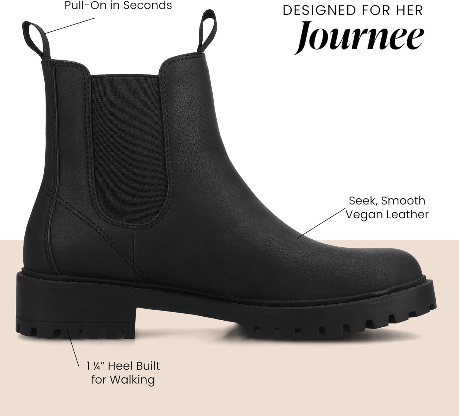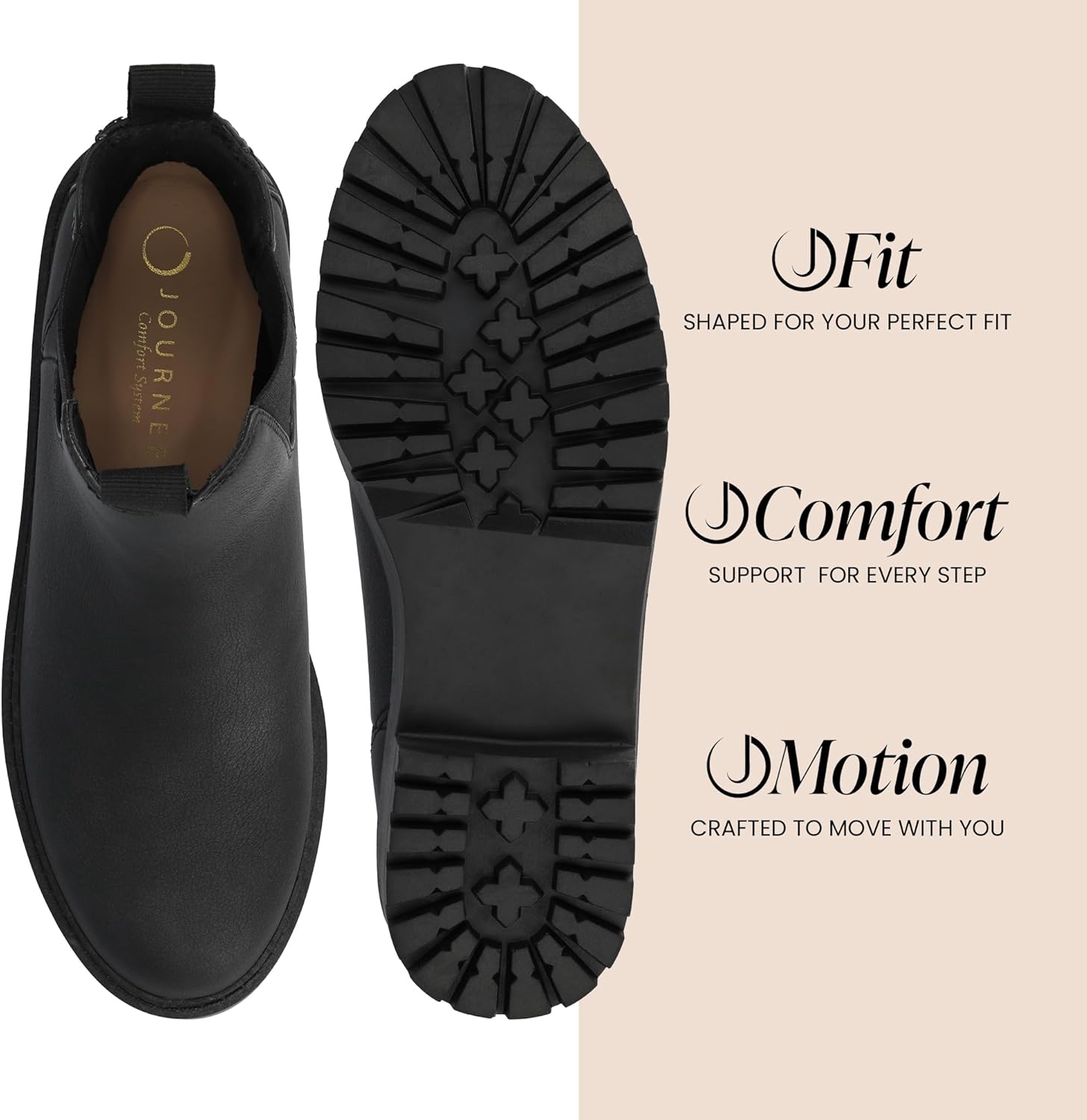 БОТИНКИ BLANCH CHELSEA: Ботинки Blanche Chelsea от Journee имеют элегантный дизайн с легким надеванием и эластичными вставками для плотной посадки. Изготовленные из искусственной кожи, они имеют круглый носок и внутреннюю стельку Journee Comfort System толщиной 4 мм для дополнительного комфорта. Эти стильные ботинки придадут изысканный штрих любому образу.