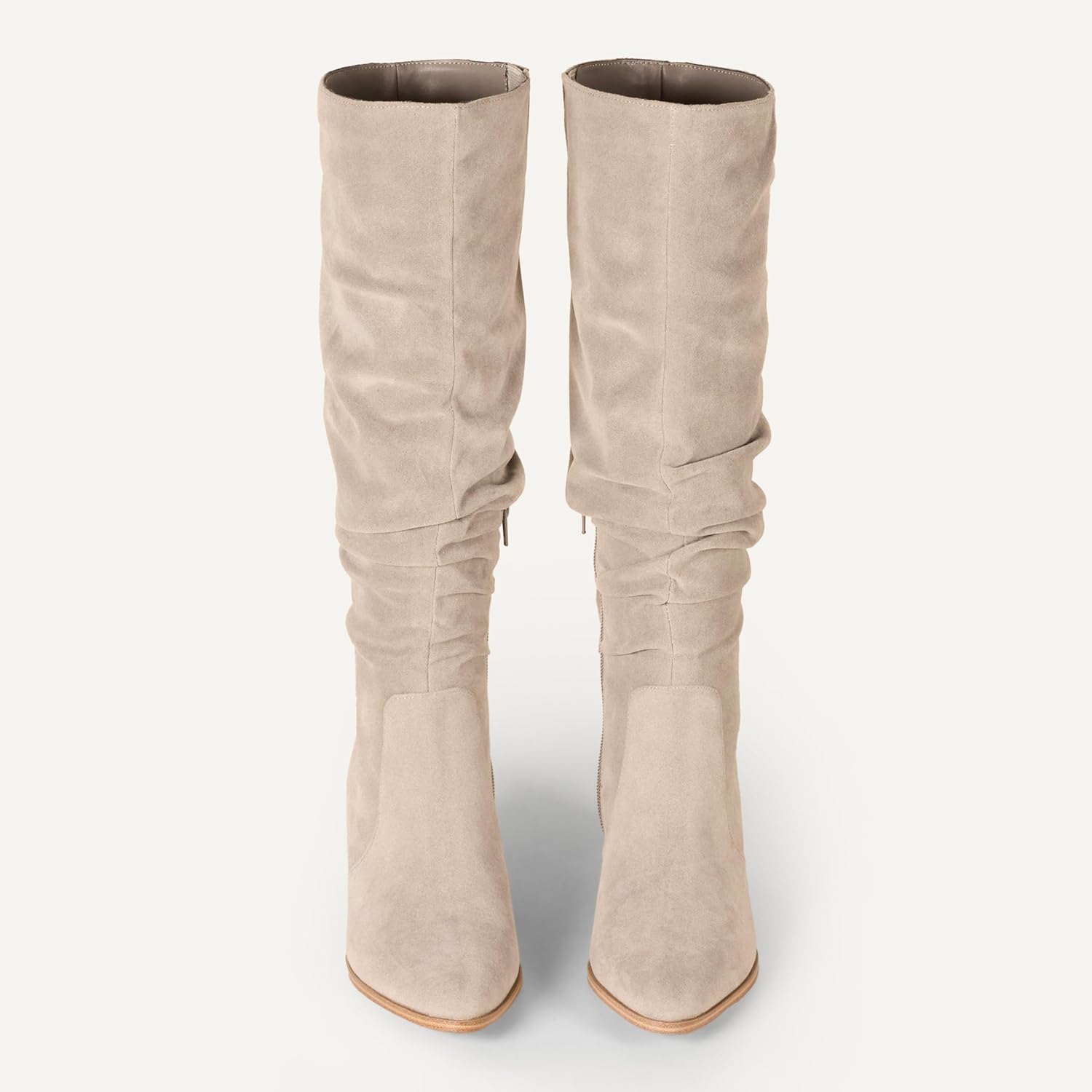 ДЕТАЛИ: Каблук 5 см с гибкой противоскользящей подошвой. Высота голенища составляет 38 см от пятки до вершины.
