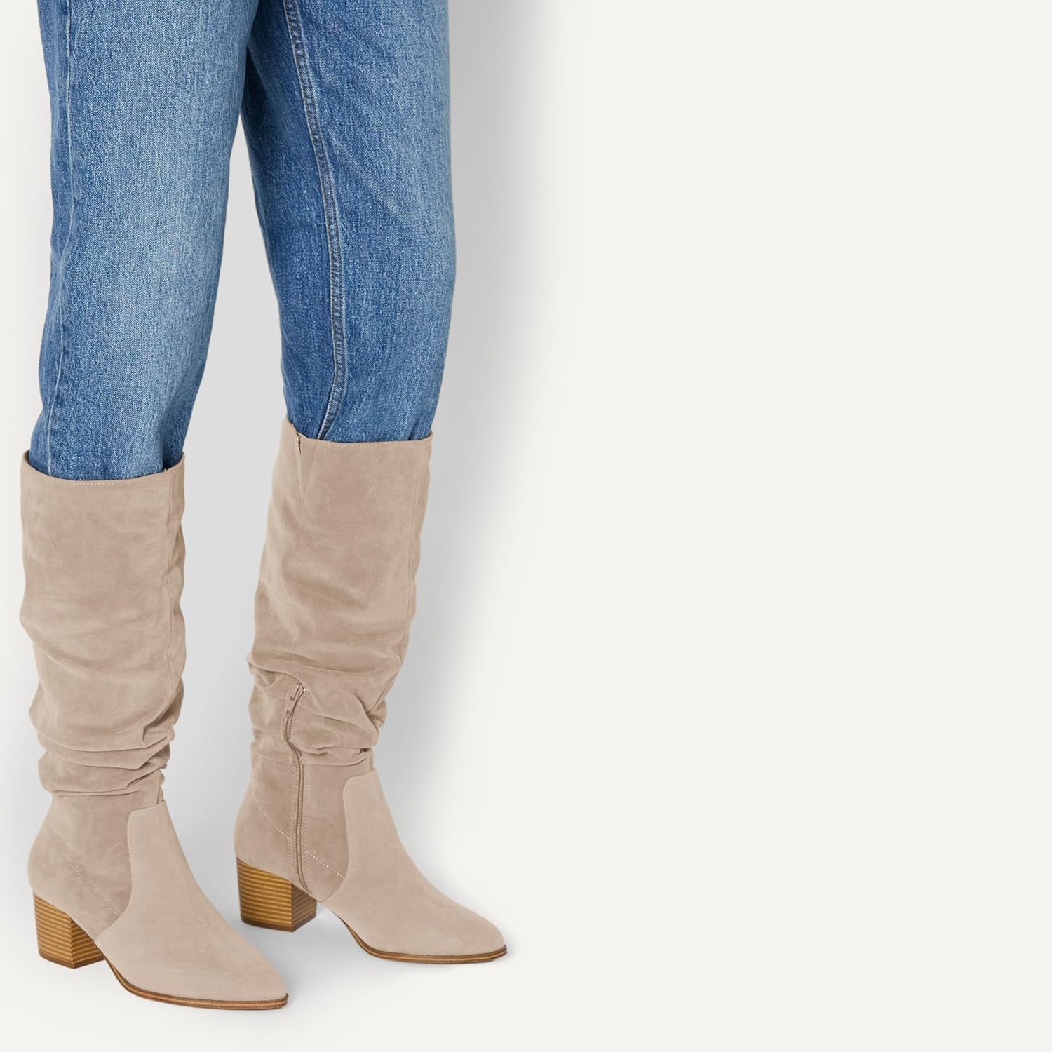 СТИЛЬ: Эти сапоги имеют стильный собранный голенище и каблуки из искусственной кожи.