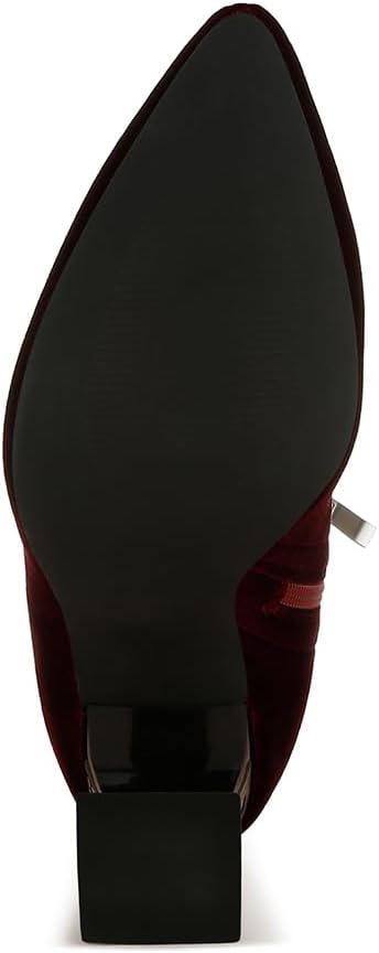 Ботинки излучают роскошную ауру благодаря красивому бархатному верху и расшированному блочному каблуку, который придает всей конструкции обуви модный и стильный вид. Мягкие стельки смягчают нагрузку и обеспечивают комфортную посадку.