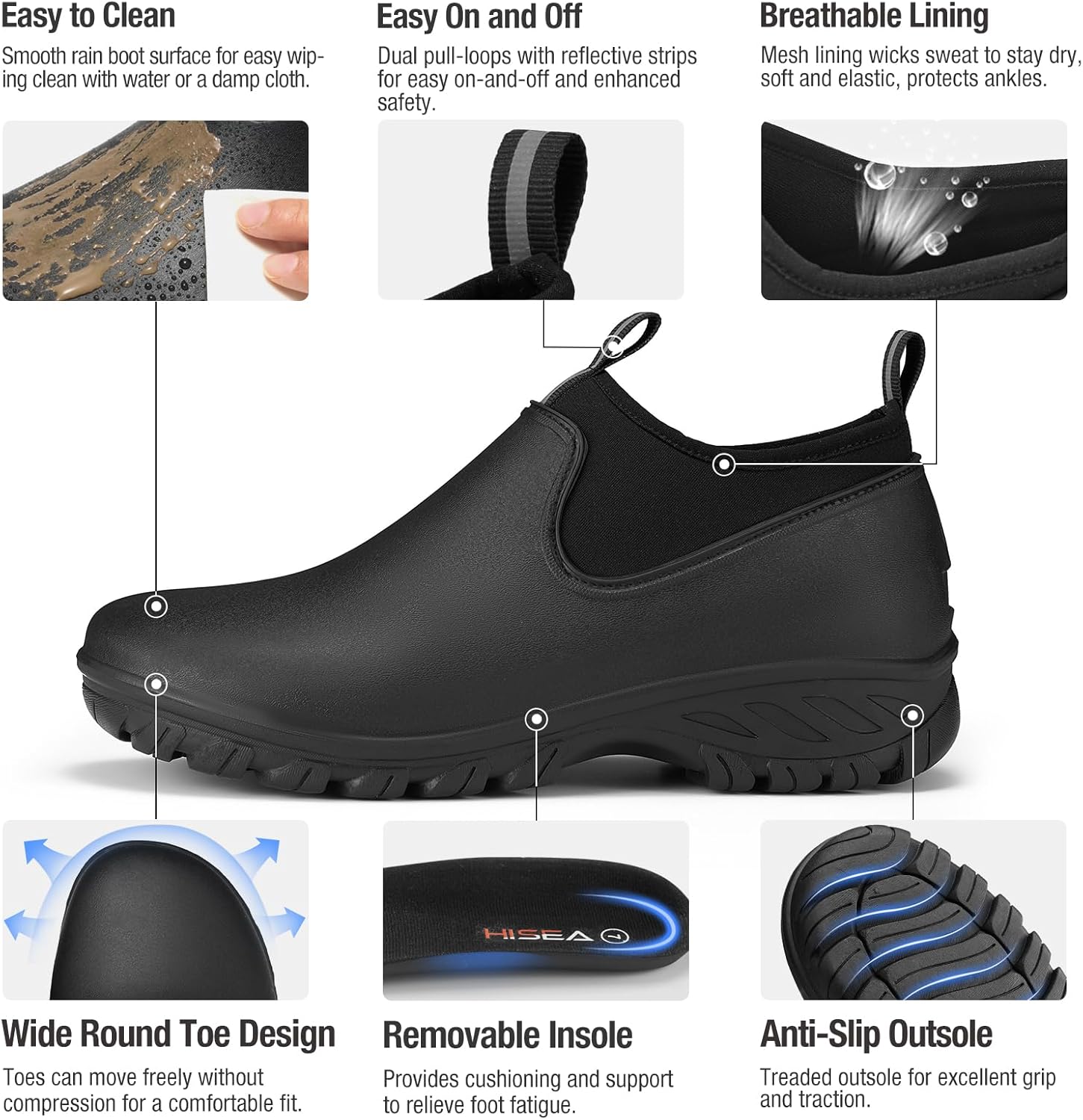 Женские водонепроницаемые резиновые ботинки HISEA для сада и улицы, Black
