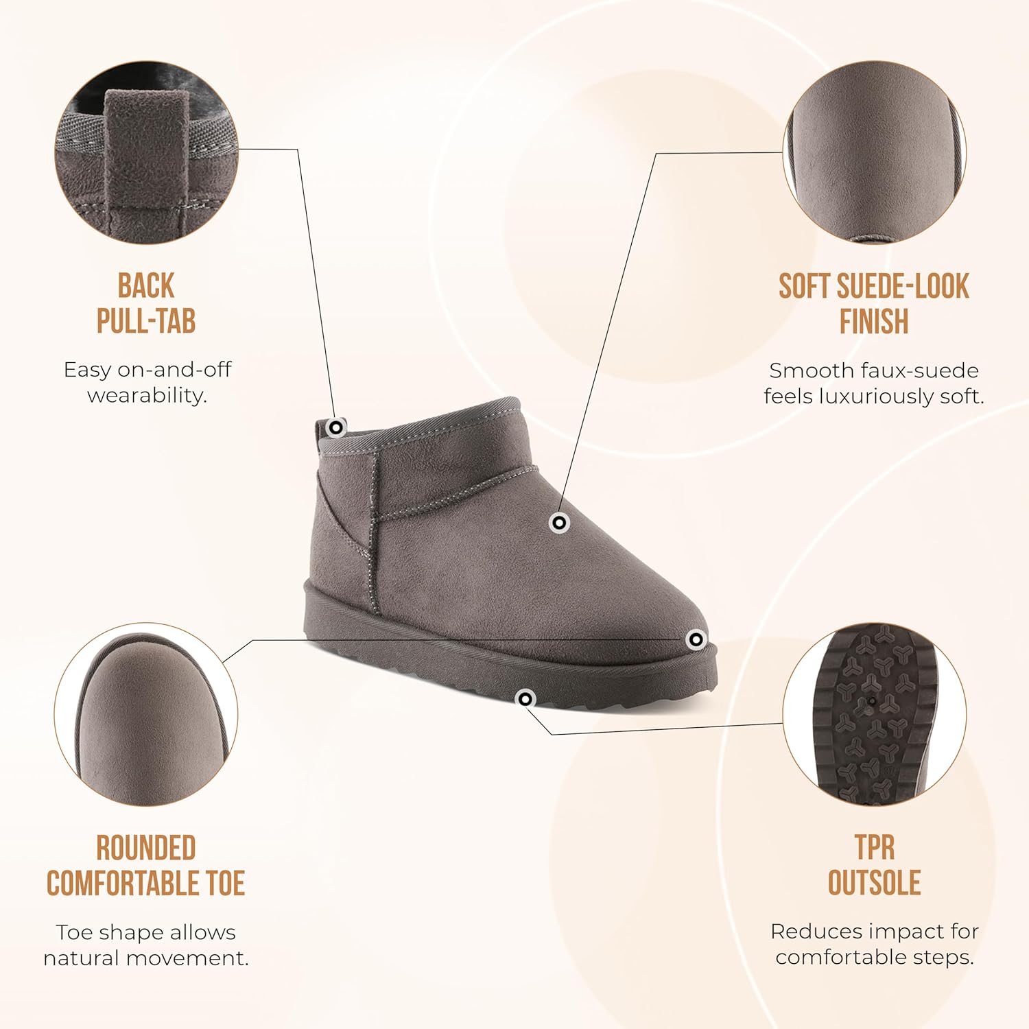 Мягкая подкладка из искусственного меха для уютного тепла - Благодаря мягкой подкладке из искусственного меха по всей внутренней части ботильоны обеспечивает тепло и изоляцию без лишнего объема. Идеально подходит для прохладных дней, подкладка обеспечивает плотную посадку и комфорт для ваших ног с утра до вечера.
