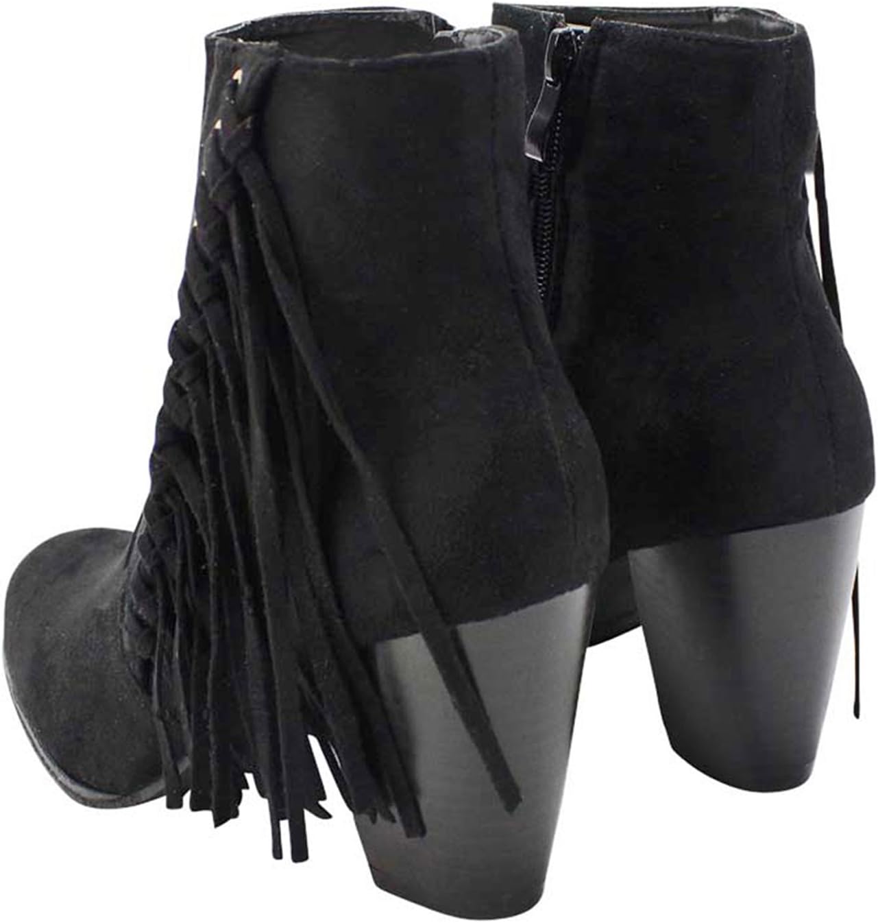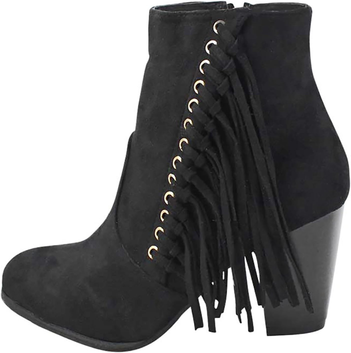 Женские ботинки Luxury Divas Boho с бахромой на массивном каблуке, Black