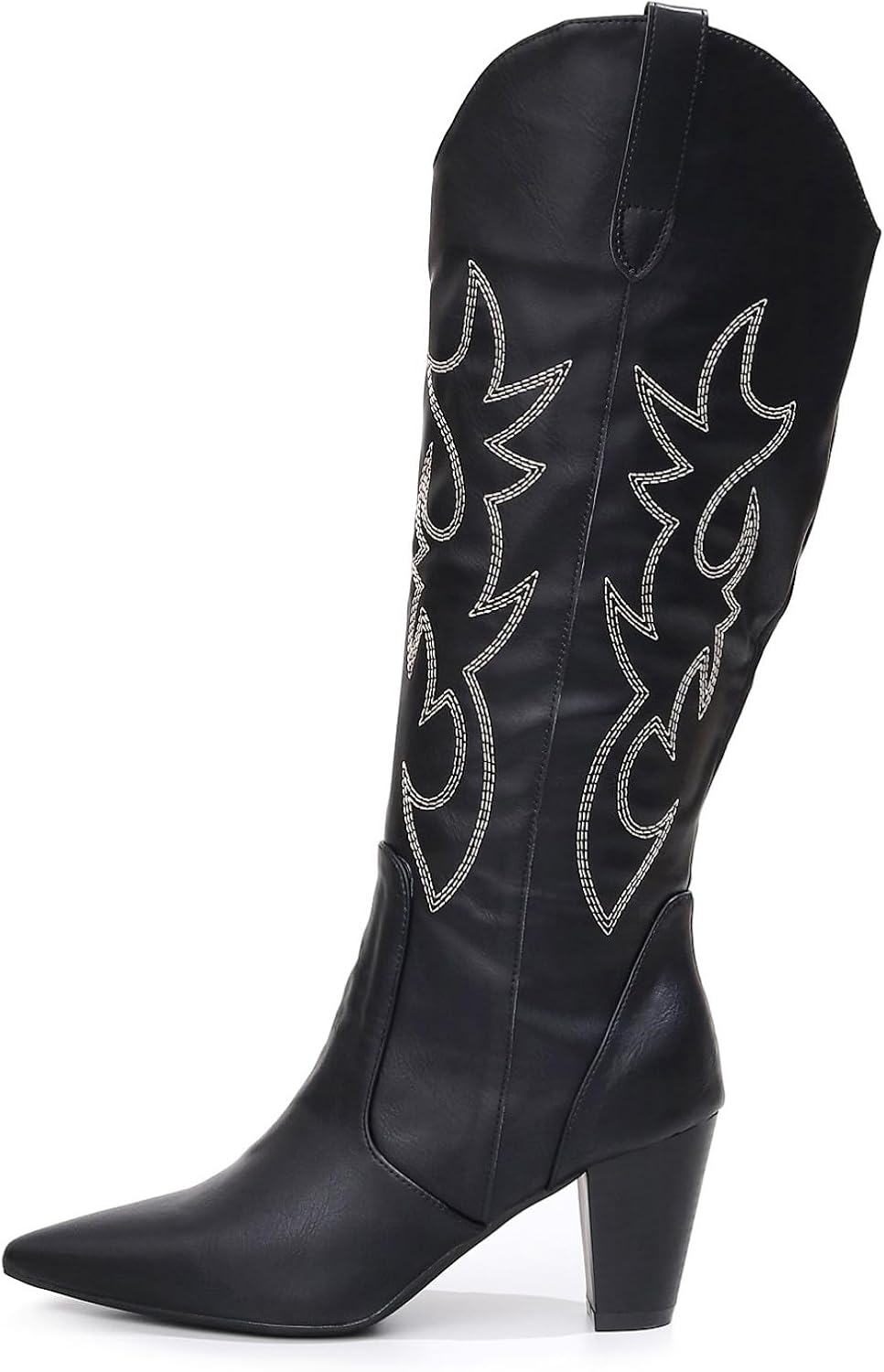 Классические сапоги до колена с боковой молнией для легкого надевания и снятия Заостренный носок на среднем каблуке, сочетание комфорта и элегантности Приятная к коже подкладка и стелька из латекса для комфортной ходьбы Мягкий верх для уюта, прочная подошва обеспечивает сцепление Подходит для: клубных вечеров, повседневной носки, свиданий, вечеринок, шопинга, уличной моды, свадеб и т.д.