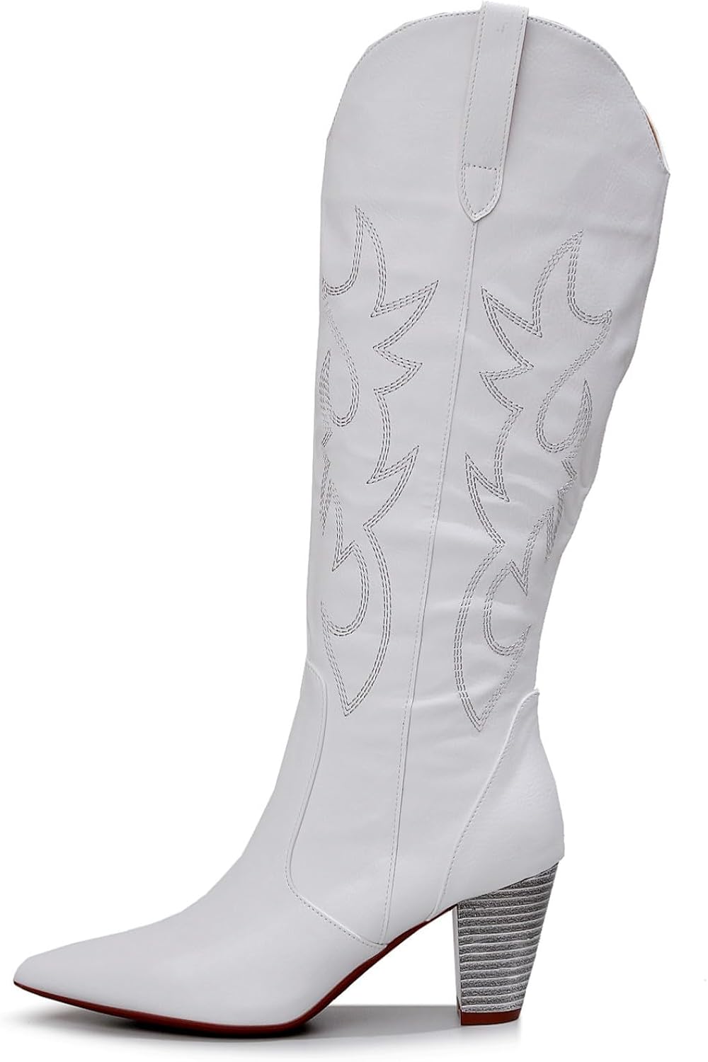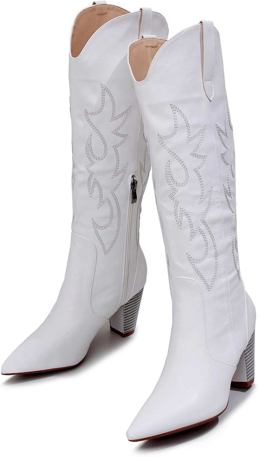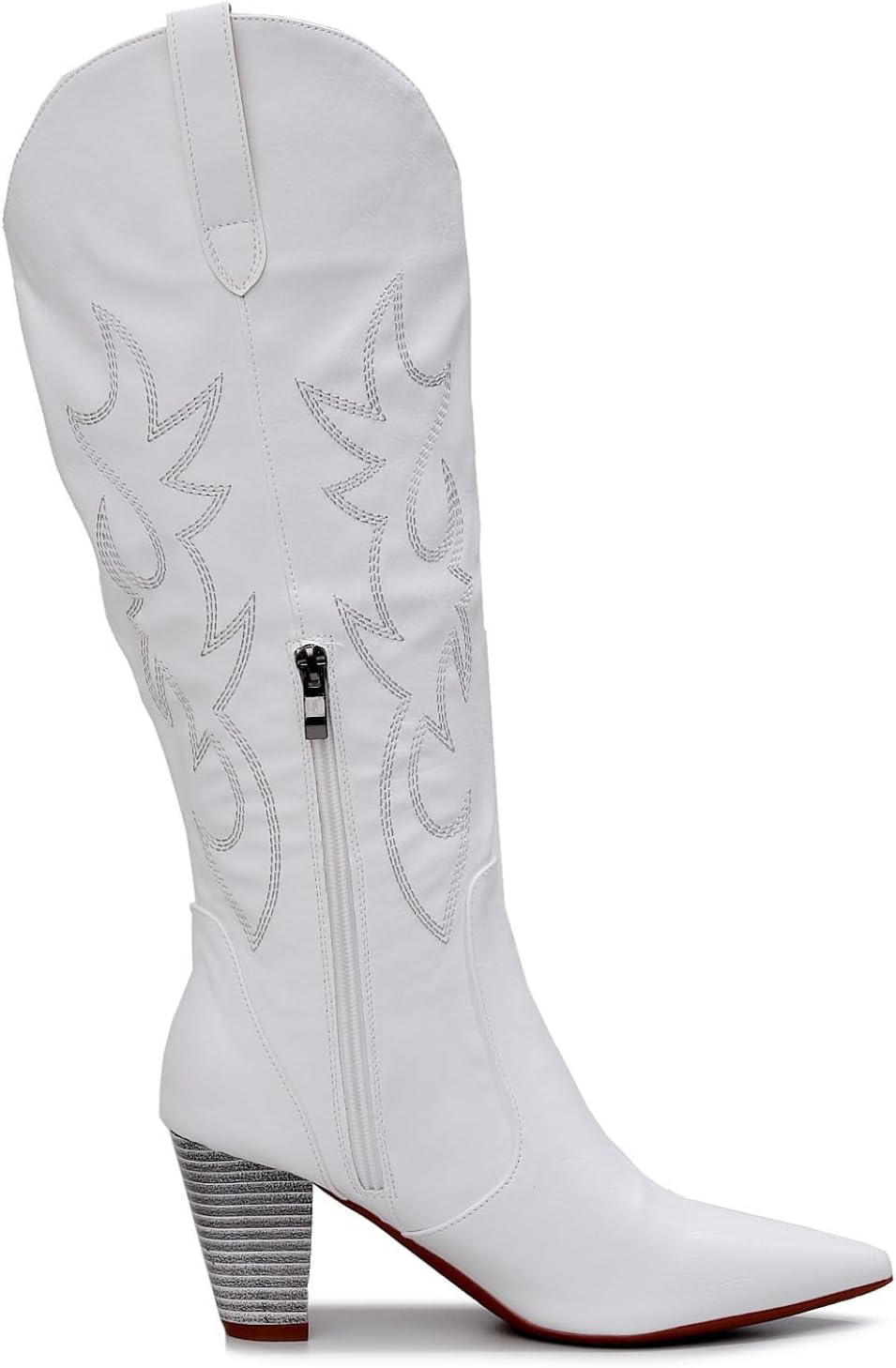 Женские модные эластичные сапоги до колена VenusCelia, White Embroidery