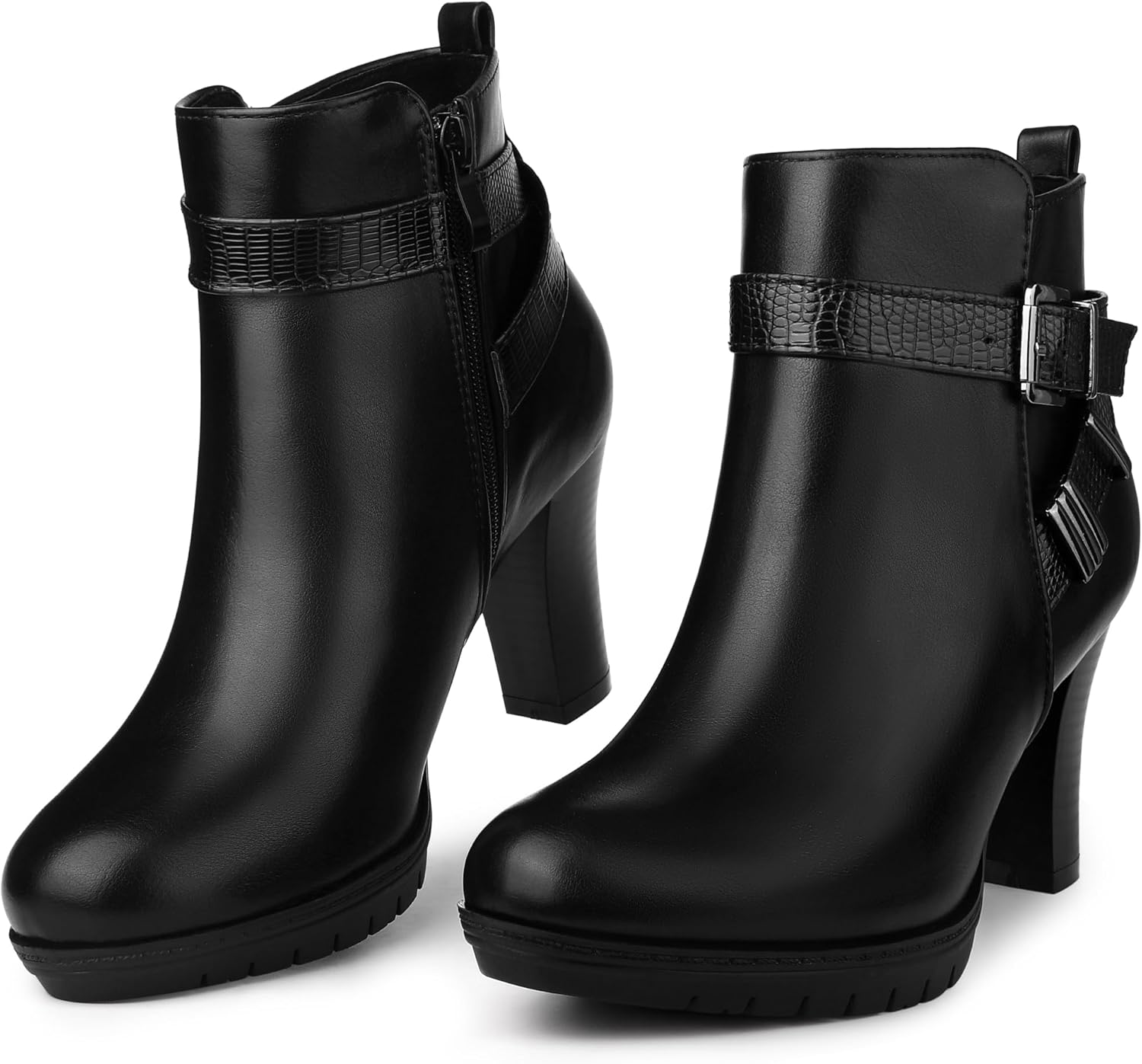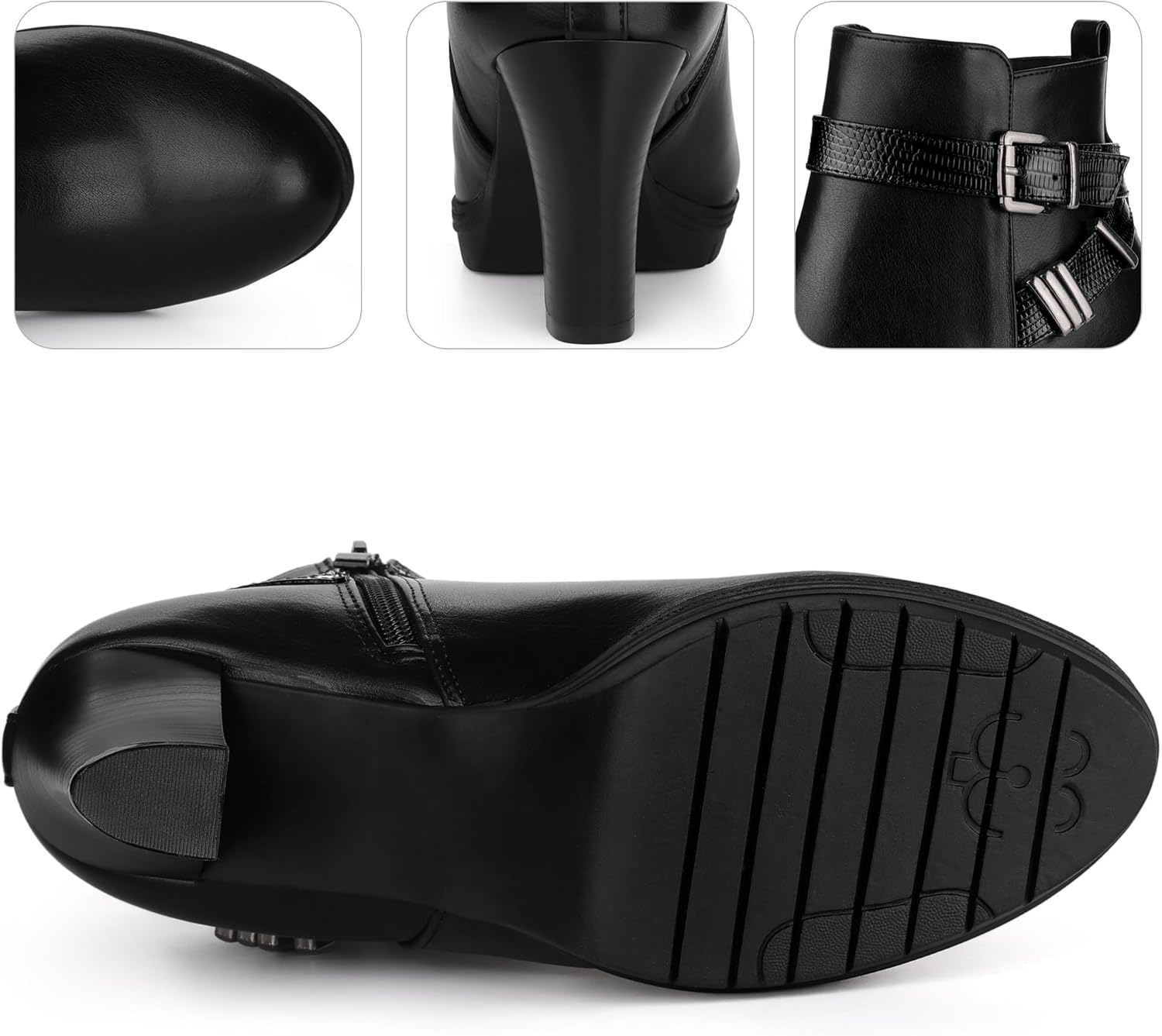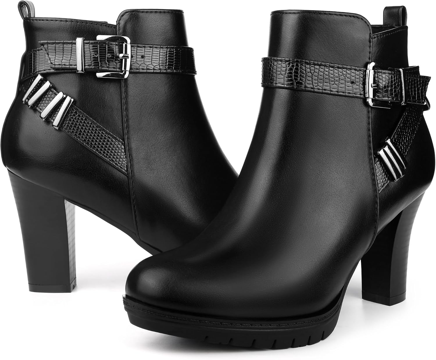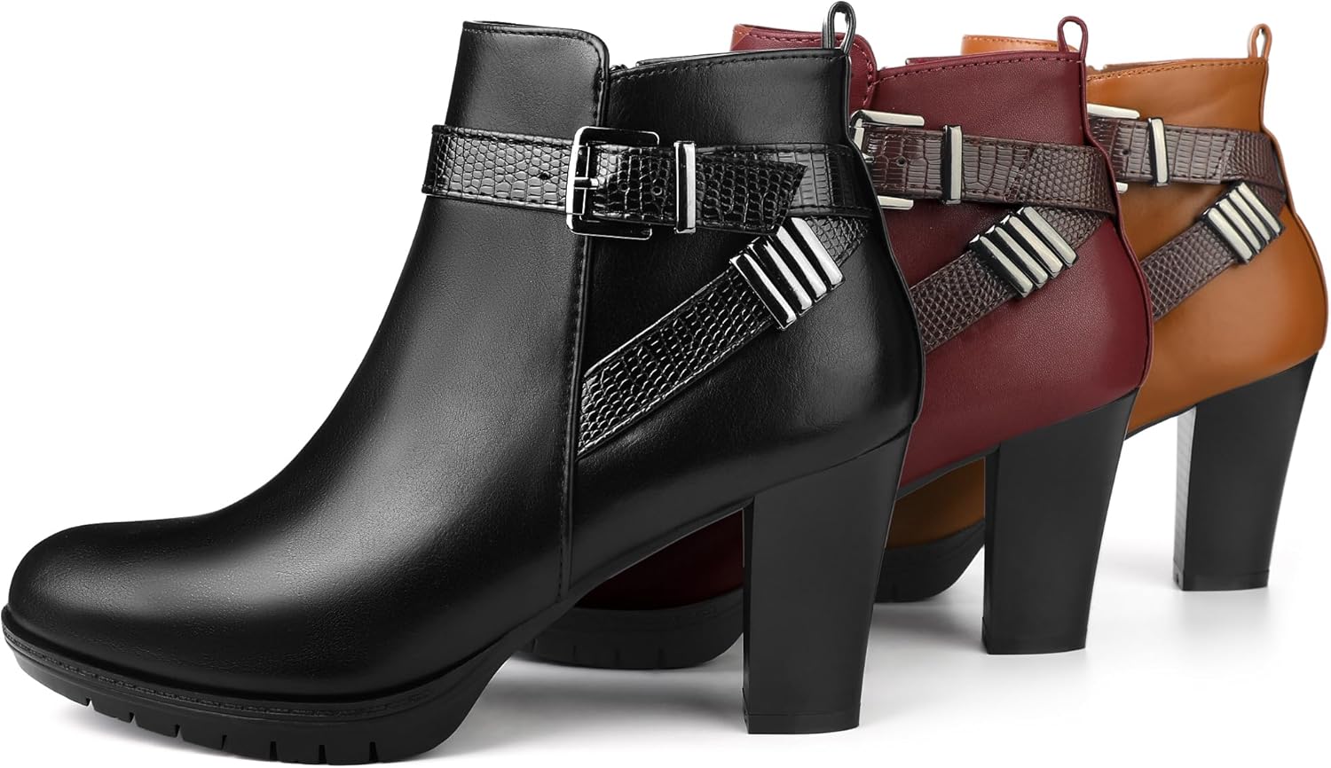 [ ОСОБЕННОСТИ ]: низкая платформа, печатные ремни, круглый нос; Блок-каблуки - ботинки на щиколотке; Side Zip; Поперечный ремень; Пряжка; Легкие