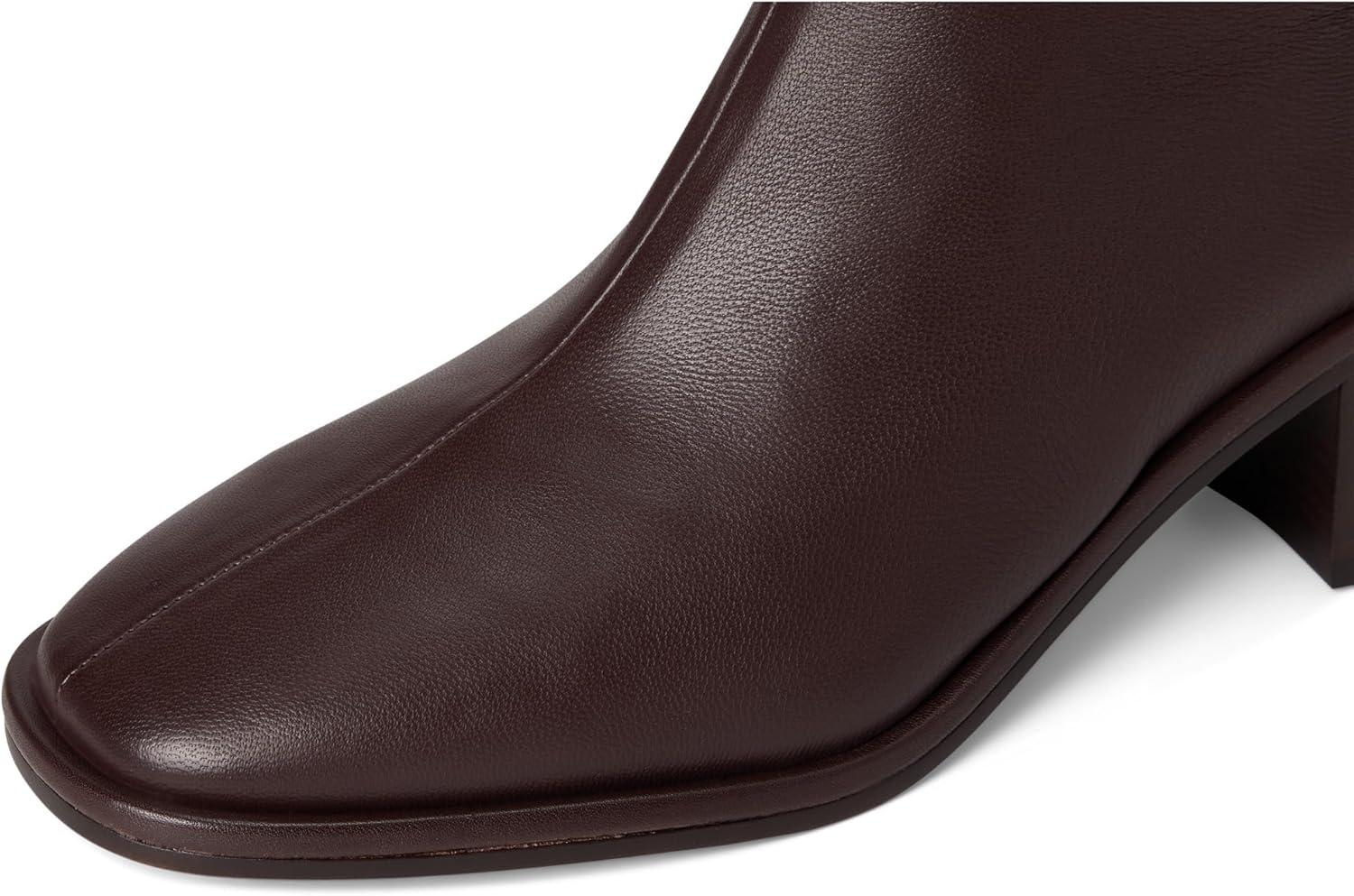 Ботильоны на среднем каблуке из эластичной кожи наппа цвета эспрессо. Оснащены стелькой из кожи с набитым логотипом золотого цвета, каблуком в виде стопки и скрытой боковой молнией. Высота каблука 3,8 см.