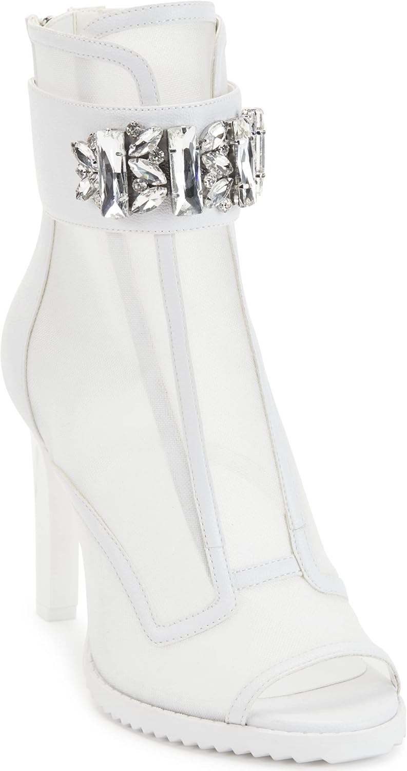Шикарный дизайн: женские ботильоны с открытым носком из сетки с украшением из камней на верхней части для смелого и модного образа.