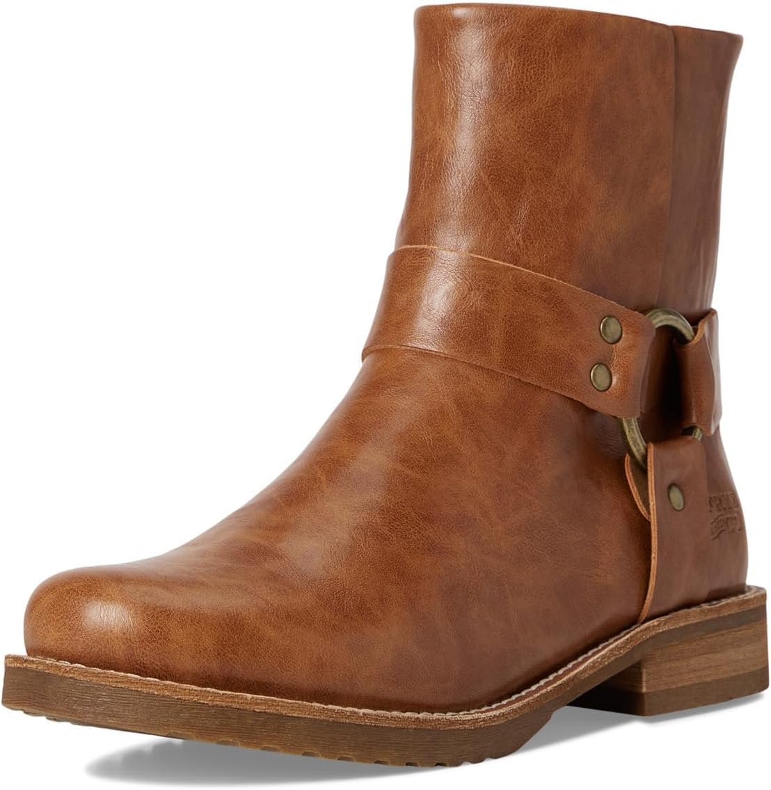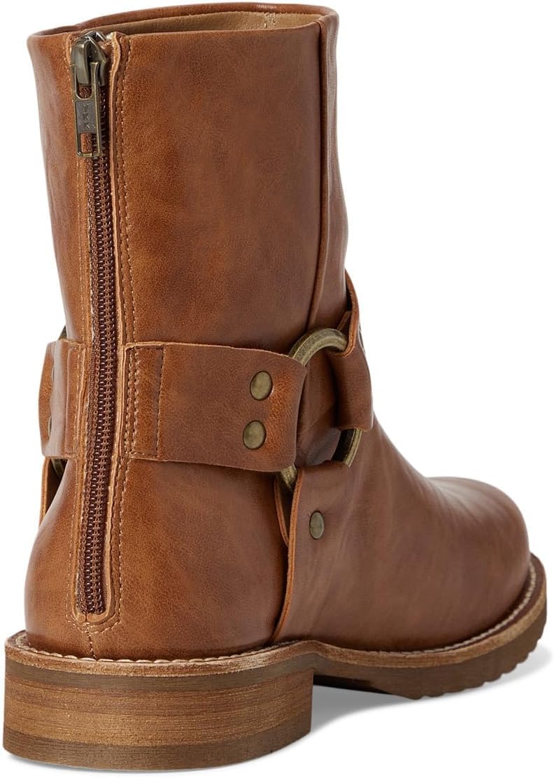 Ботильоны FRYE AND CO. Chesnee Harness Short выполнен из состаренной кожи с веганской отделкой и украшен металлическими деталями ремешка, придавая мото-стиль. Мягкая стелька из вспененного материала и легкая гибкая резиновая подошва обеспечивают комфорт с первых шагов, а застежка-молния на задней стороне и голенище по щиколотку делают эту обувь удобной для повседневного ношения. Подкладка из полиуретана. Классический округлый носок. Накладной каблук. Сшитый кожаный кант.