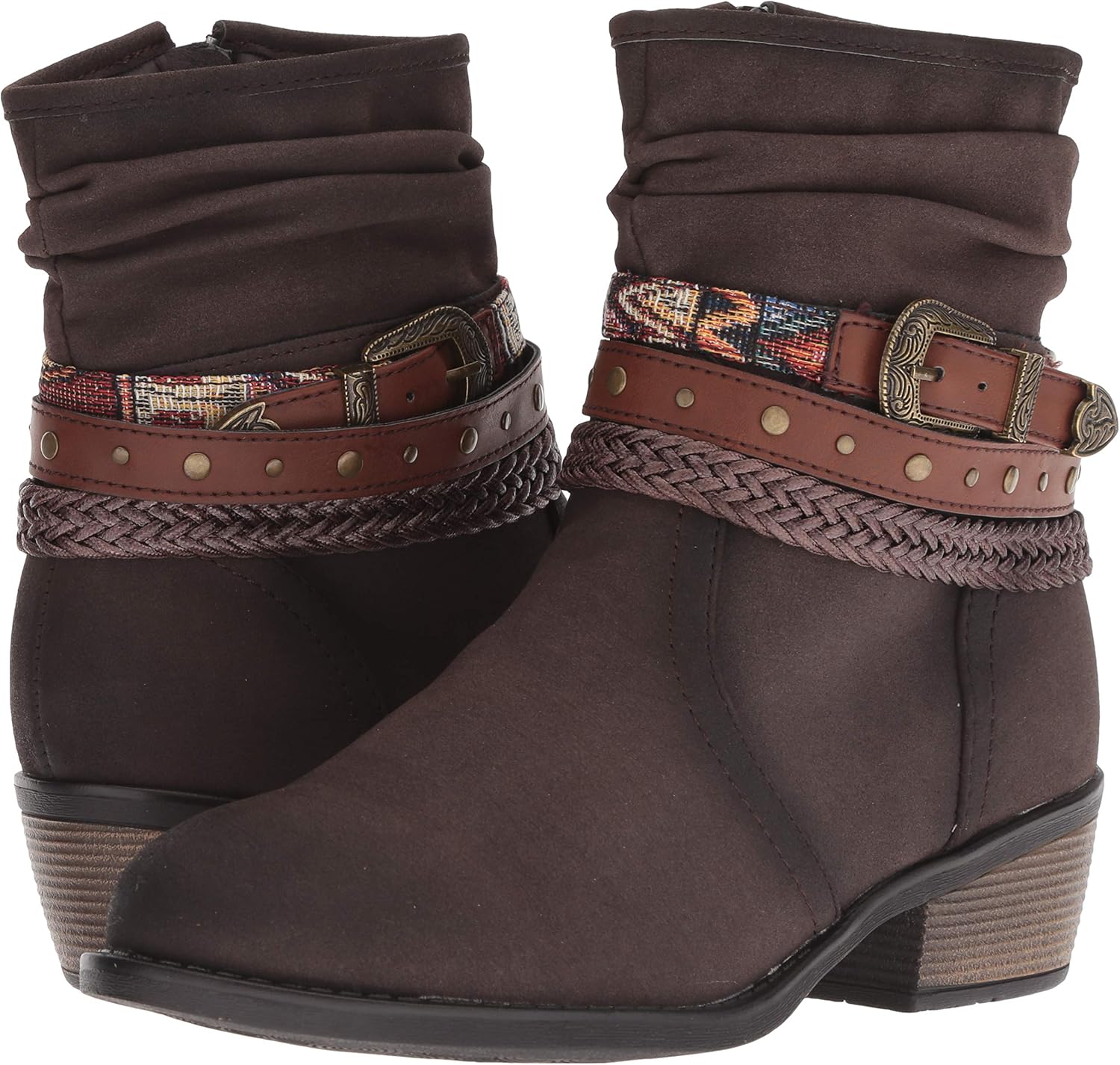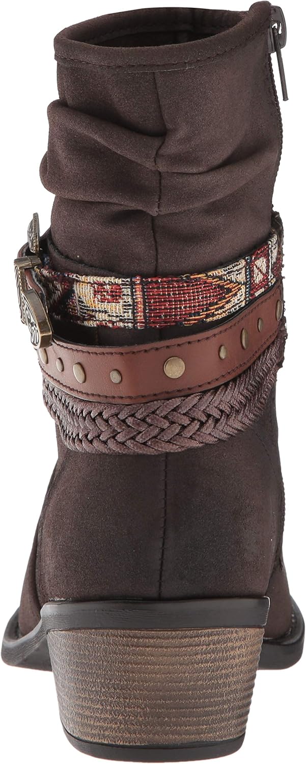 Сапоги Roper Libbie - идеальный выбор, чтобы добавить вашему образу немного западного стиля! Верх выполнен из искусственной кожи. Особенности: плетеный ремешок, металлический заклепочный ремешок и классический ремень из искусственной кожи с многоцветной текстильной отделкой. Мягкая синтетическая подкладка обеспечивает комфорт и удобство. Легко приглушенная текстильная стелька способствует комфортному ощущению при ходьбе. Круглый носок. Каблук из искусственного материала. Подошва из искусственного материала с резиновой накладкой на каблуке для лучшего сцепления. Импортировано. Размеры: Высота каблука: 4,5 см