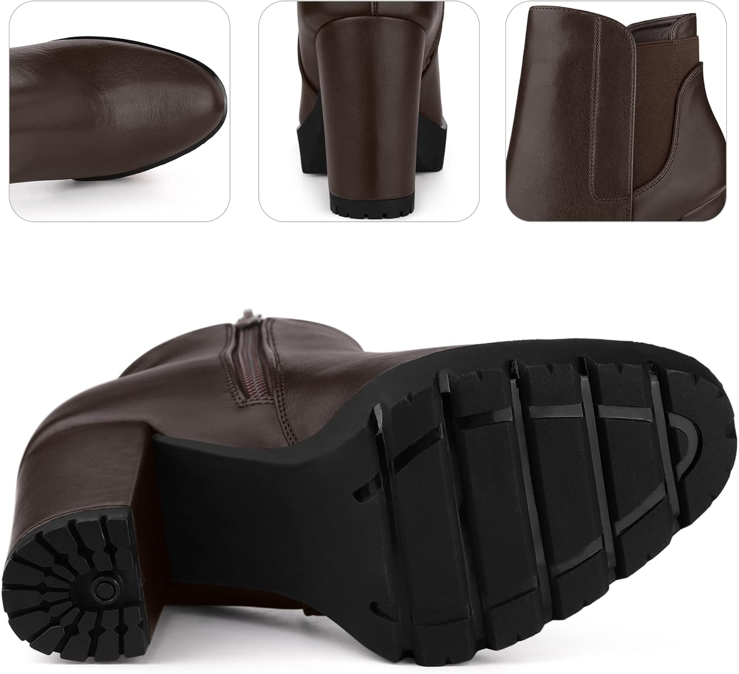 [ ОСОБЕННОСТИ ]: Круглый носок, высокий широкий каблук, боковая молния, ботильоны Челси до щиколотки, легкая подкладка