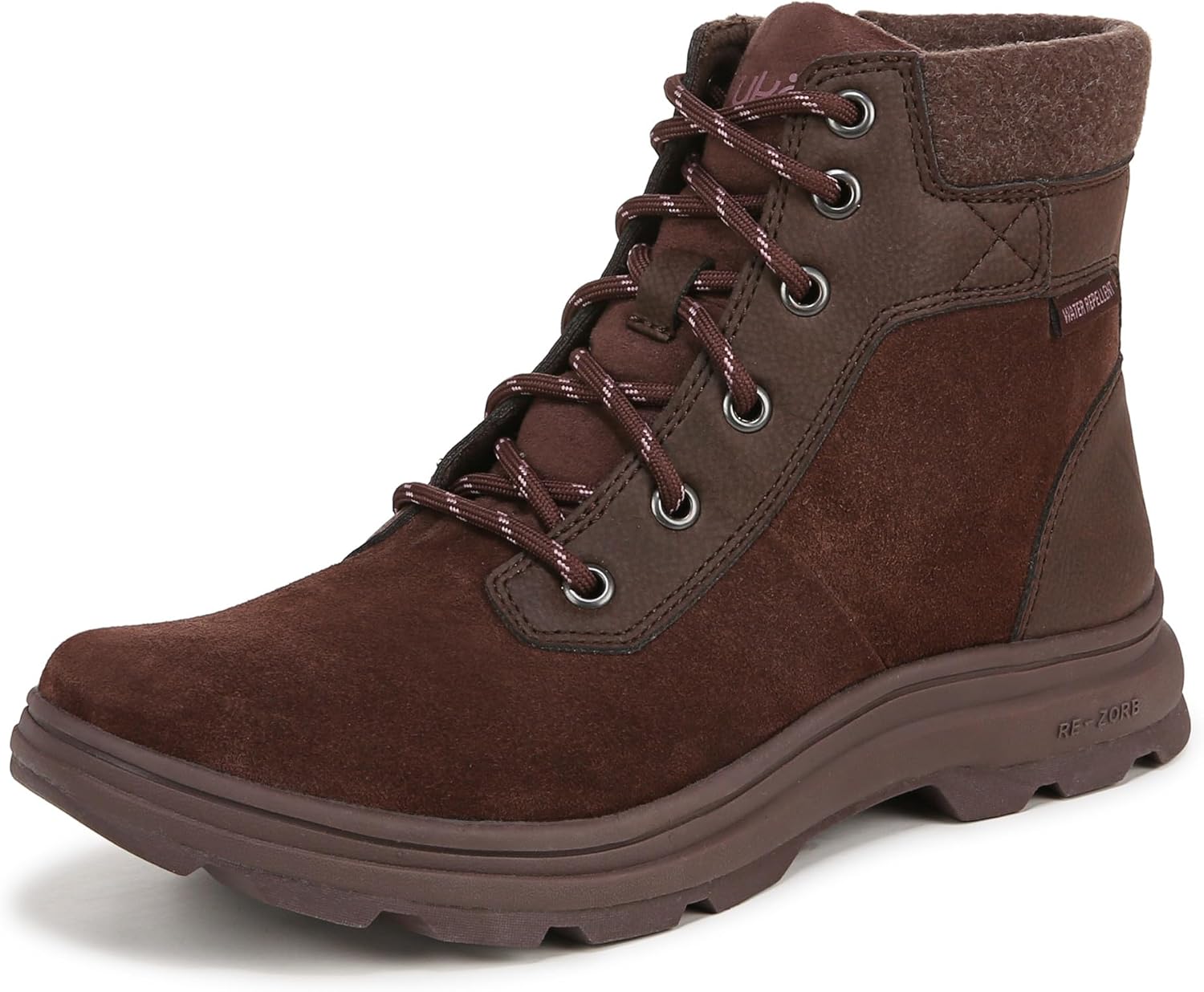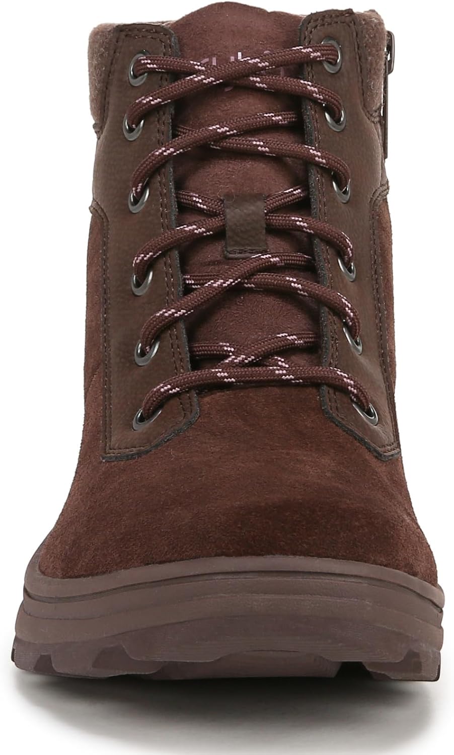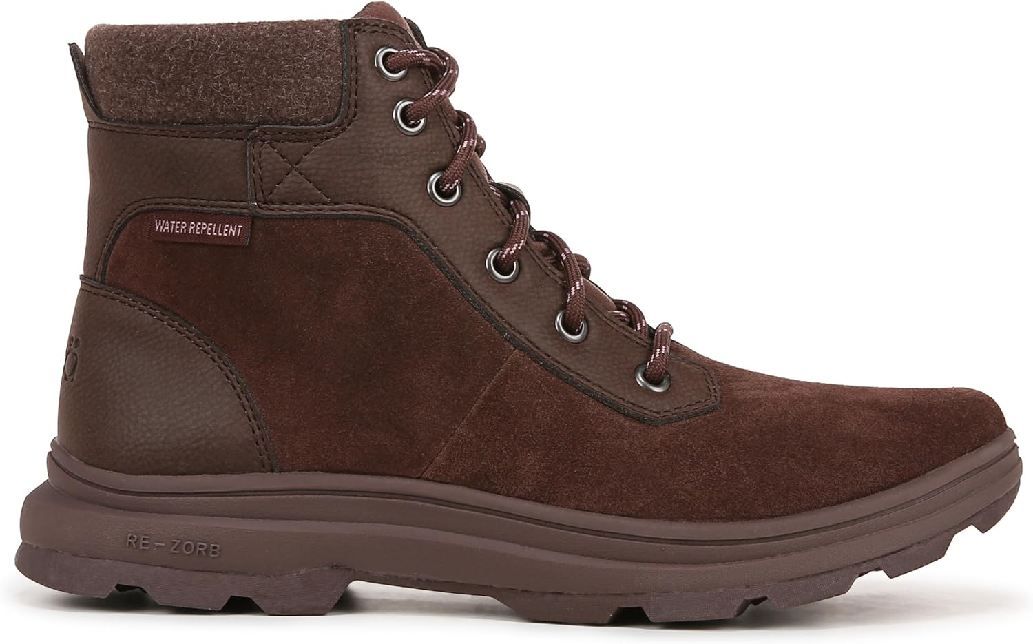 Обувь Go-to для женщин с высокой посадкой. Идите куда угодно в этих спортивных сапогах. Идеально для: повседневной носки и прогулок. PERFORMANCE TECH: амортизация RE-ZORB в пятке и передней части стопы для защиты от ударов и амортизации. Сделано для женщин: разработано для уникальной формы стопы женщины, движения мышц, и создано с более узкой пяткой, просторным носком и контурной, гибкой амортизацией. МАТЕРИАЛЫ: водоотталкивающая замша с мягким вязаным воротником. Застежка: шнуровка спереди и боковая молния для легкого надевания и снятия. Стелька: анатомическая с дополнительной поддержкой свода стопы и пятки. Средняя подошва: легкий EVA для мягкой амортизации. Подошва: прочная формованная TPR-подошва с RE-ZORB вставками. Высота сапога 12,7 см. ВЕС 320 г/11,3 унций на обувь. Перепад пятка-to-носка: 10,5 мм