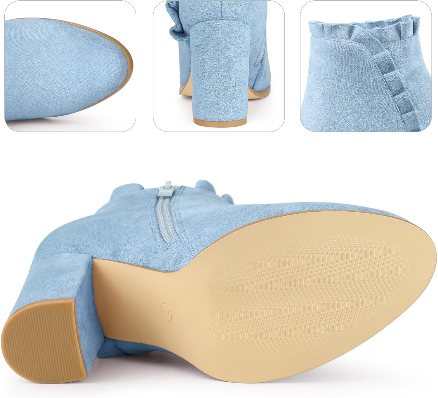 [ Подходит для разных случаев ]: Эти ботильоны выполнены в основном из мягкого верхнего слоя из искусственной замши и прочной противоскользящей резиновой подошвы, классический, но элегантный и эргономичный дизайн, вы не будете уставать, носив их весь день