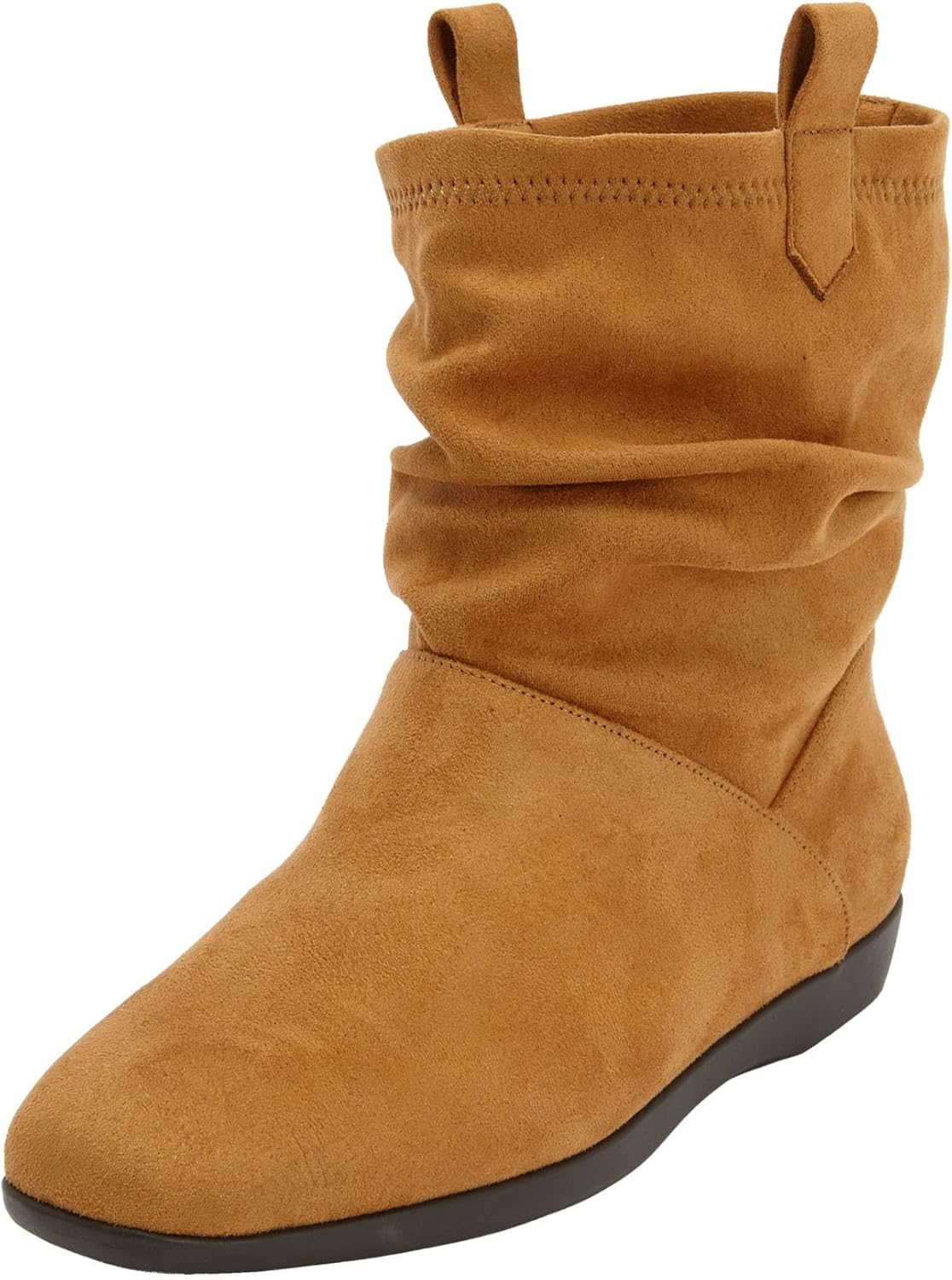 Освежите свой осенний стиль с этими удобными и повседневными ботильонами под замшу. Верх под замшу Складчатый голенище Мягкая стелька Гибкая подошва с антискользящим эффектом Высота голенища 7" Устойчивый каблук 7/8" Ботильоны под замшу доступны в полных и половинных размерах 7-11, 12 M; 7-11, 12 W; 7-11, 12 WW