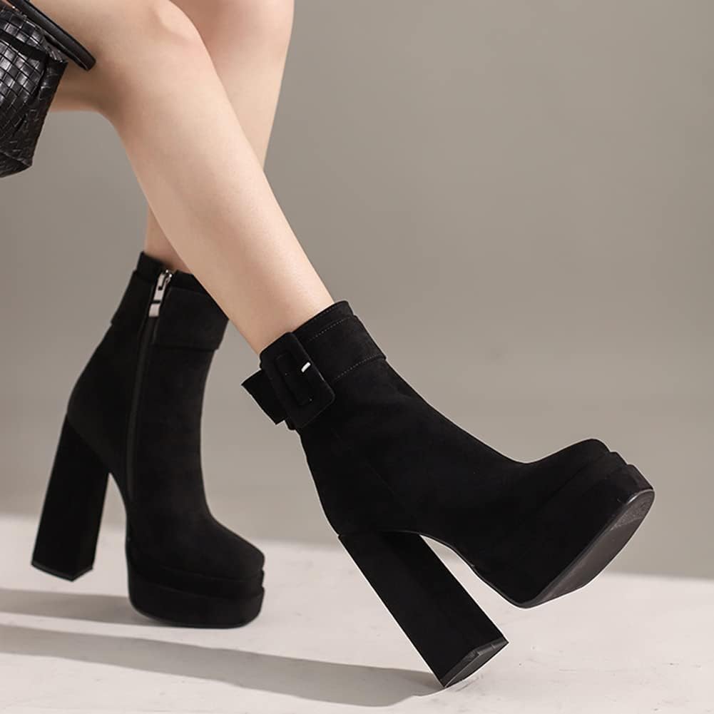 Ботильоны на платформе с каблуком MRKEWUNEY для женщин, 14 Black 8 403₽