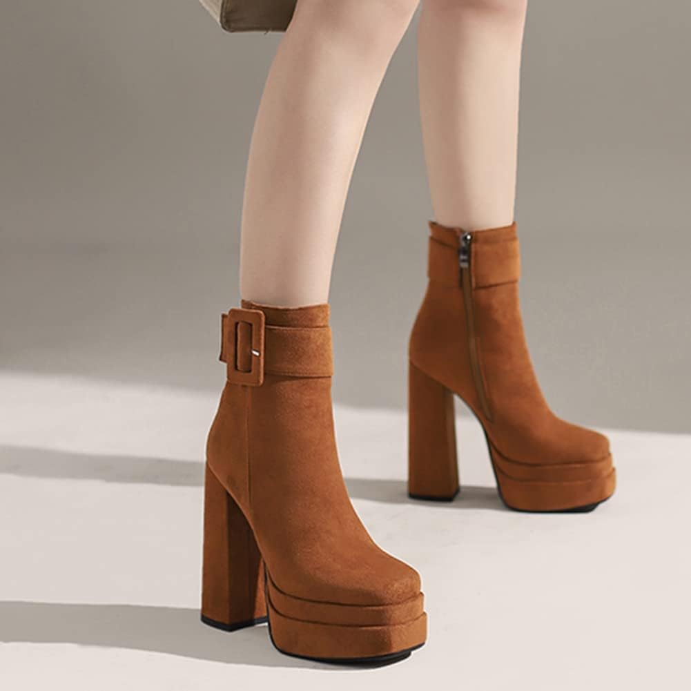 Ботильоны на платформе с каблуком MRKEWUNEY для женщин, 14 Brown