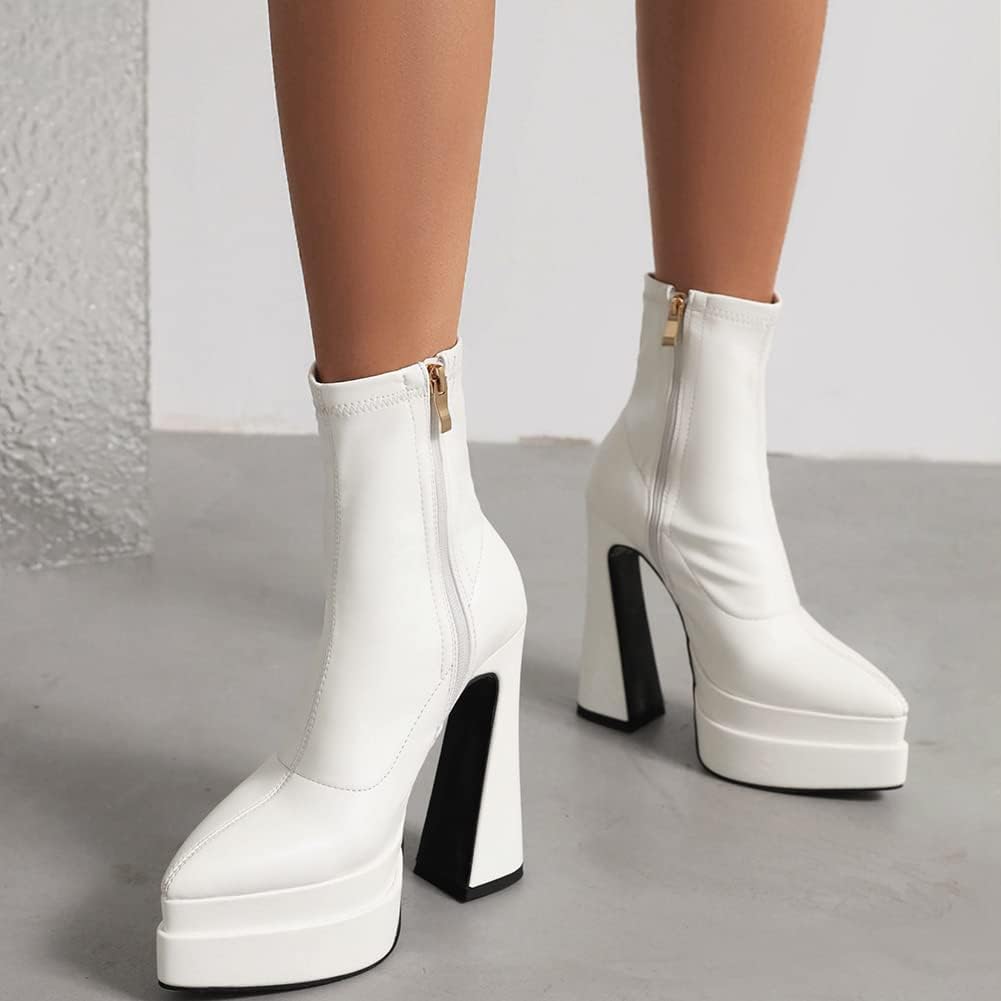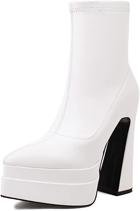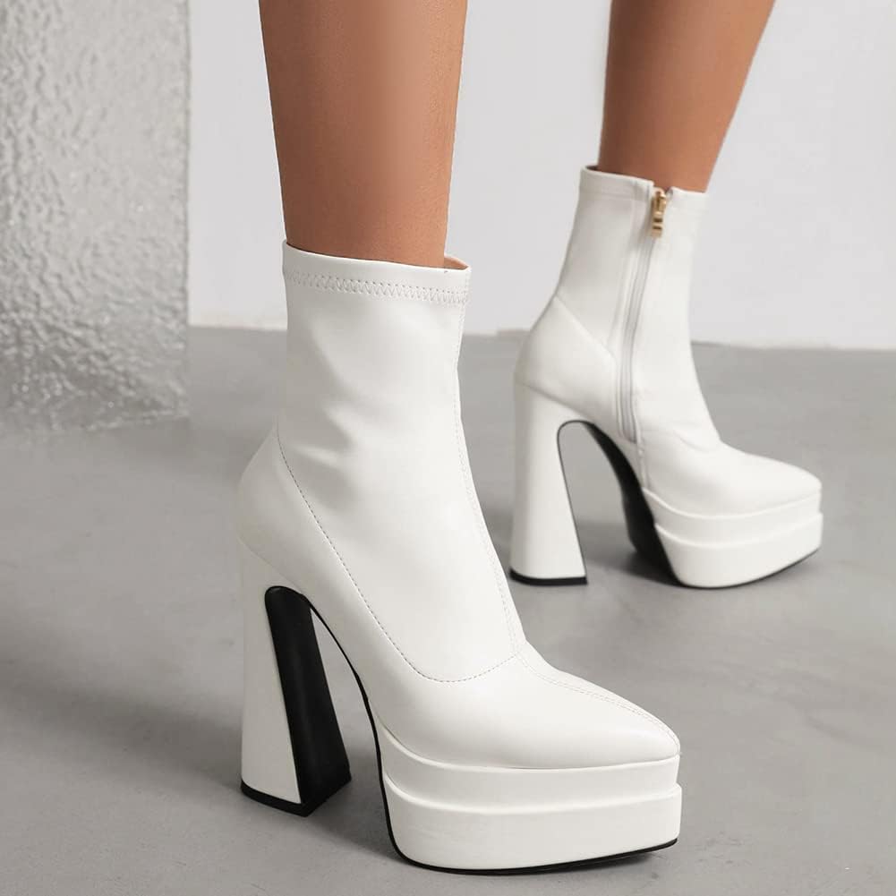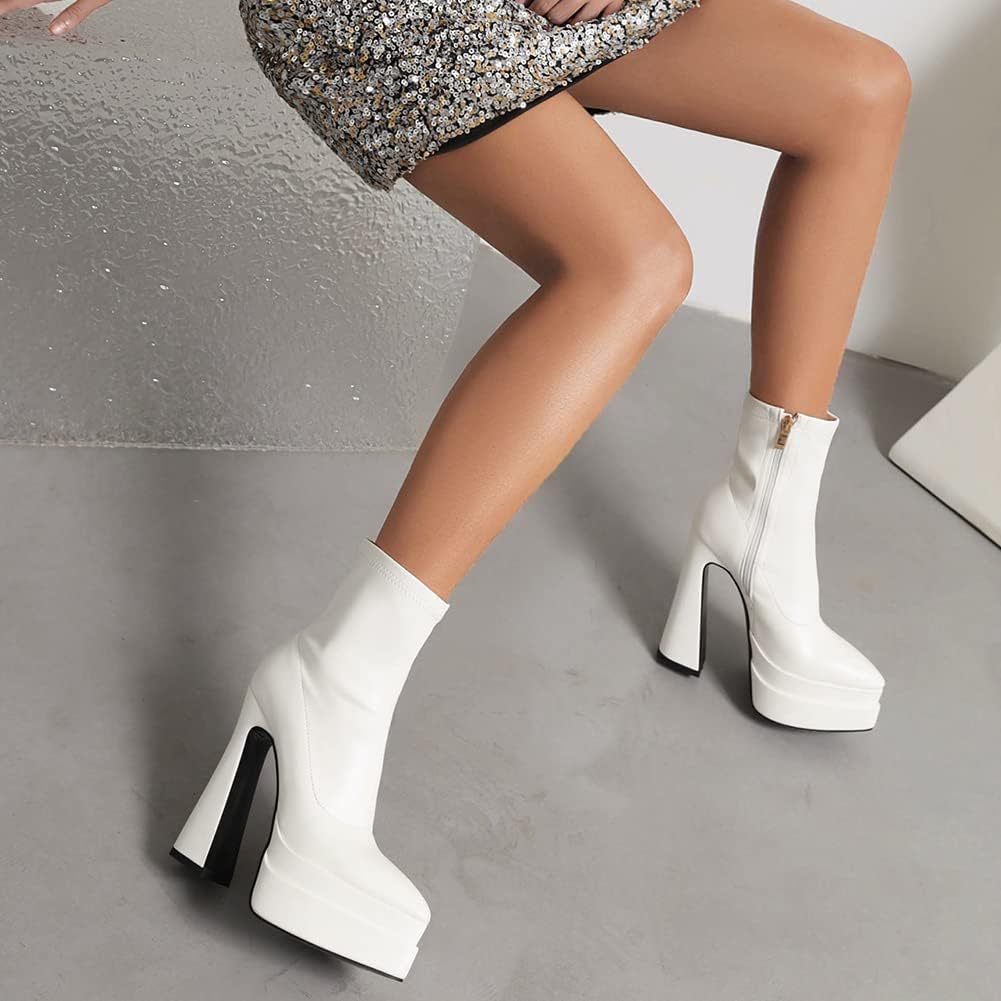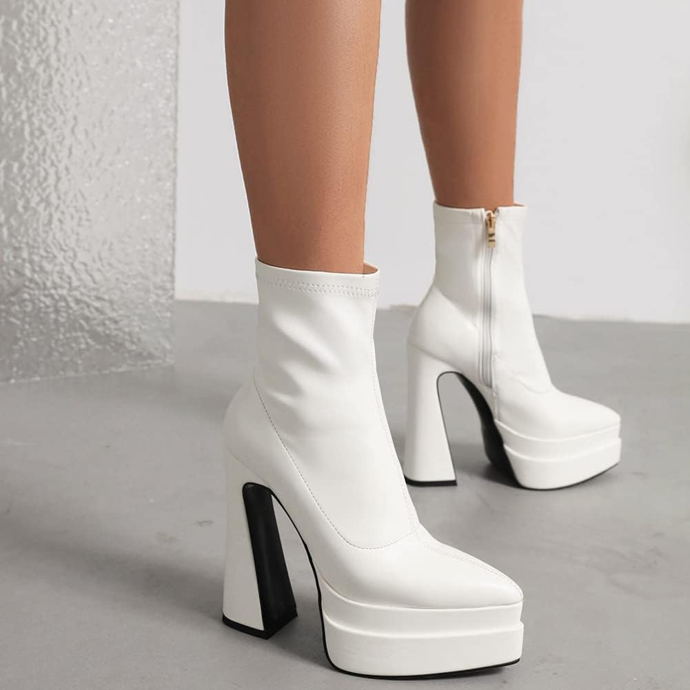 Ботильоны на платформе с каблуком MRKEWUNEY для женщин, 15 White