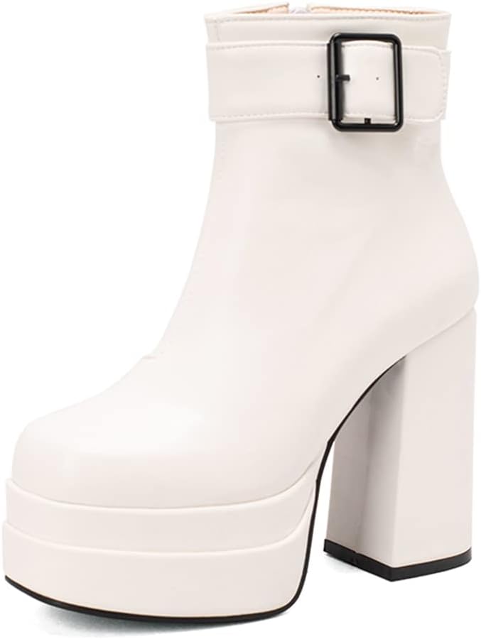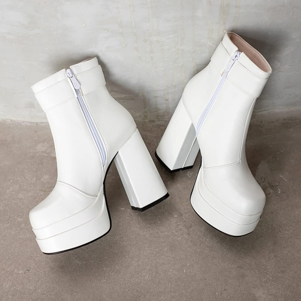 Ботильоны на платформе с каблуком MRKEWUNEY для женщин, 11 White