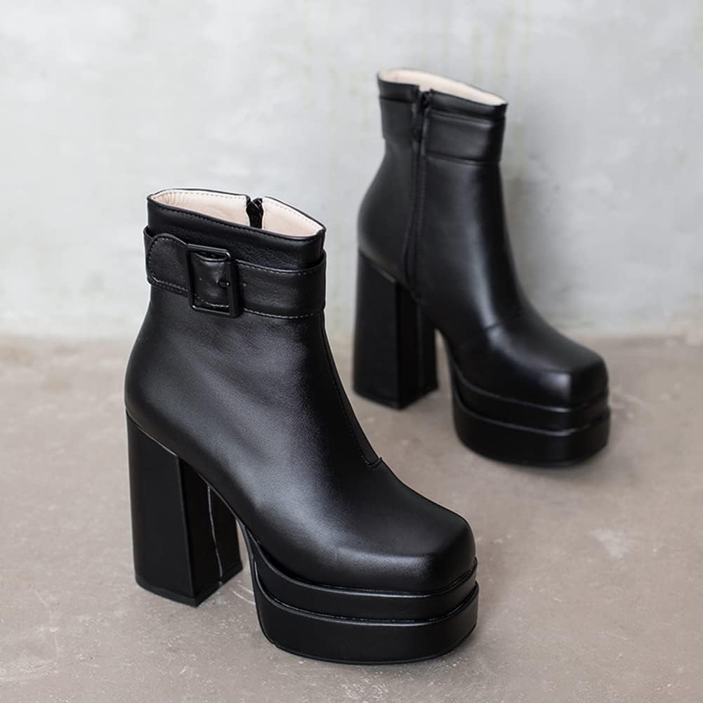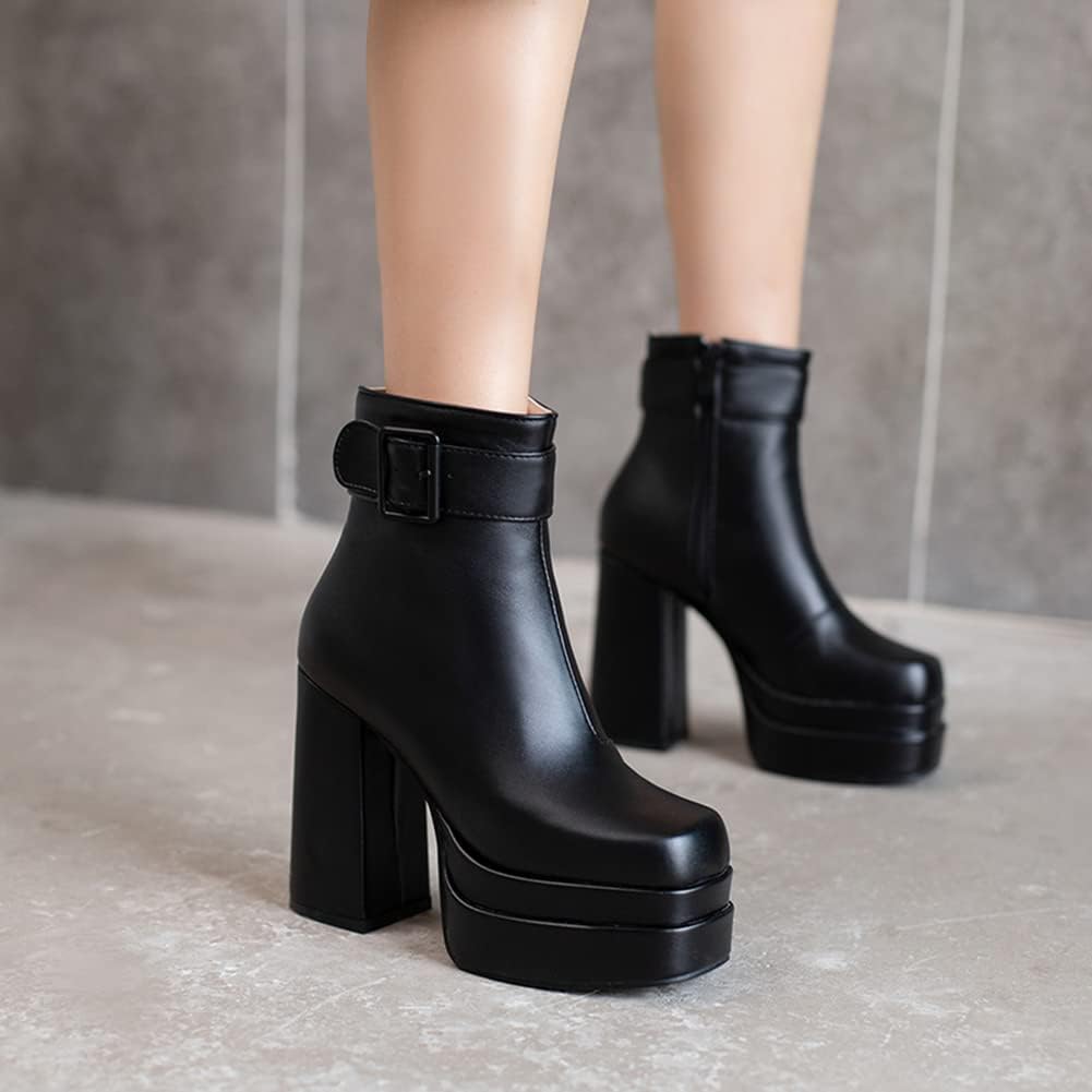 Ботильоны на платформе с каблуком MRKEWUNEY для женщин, 11 Black