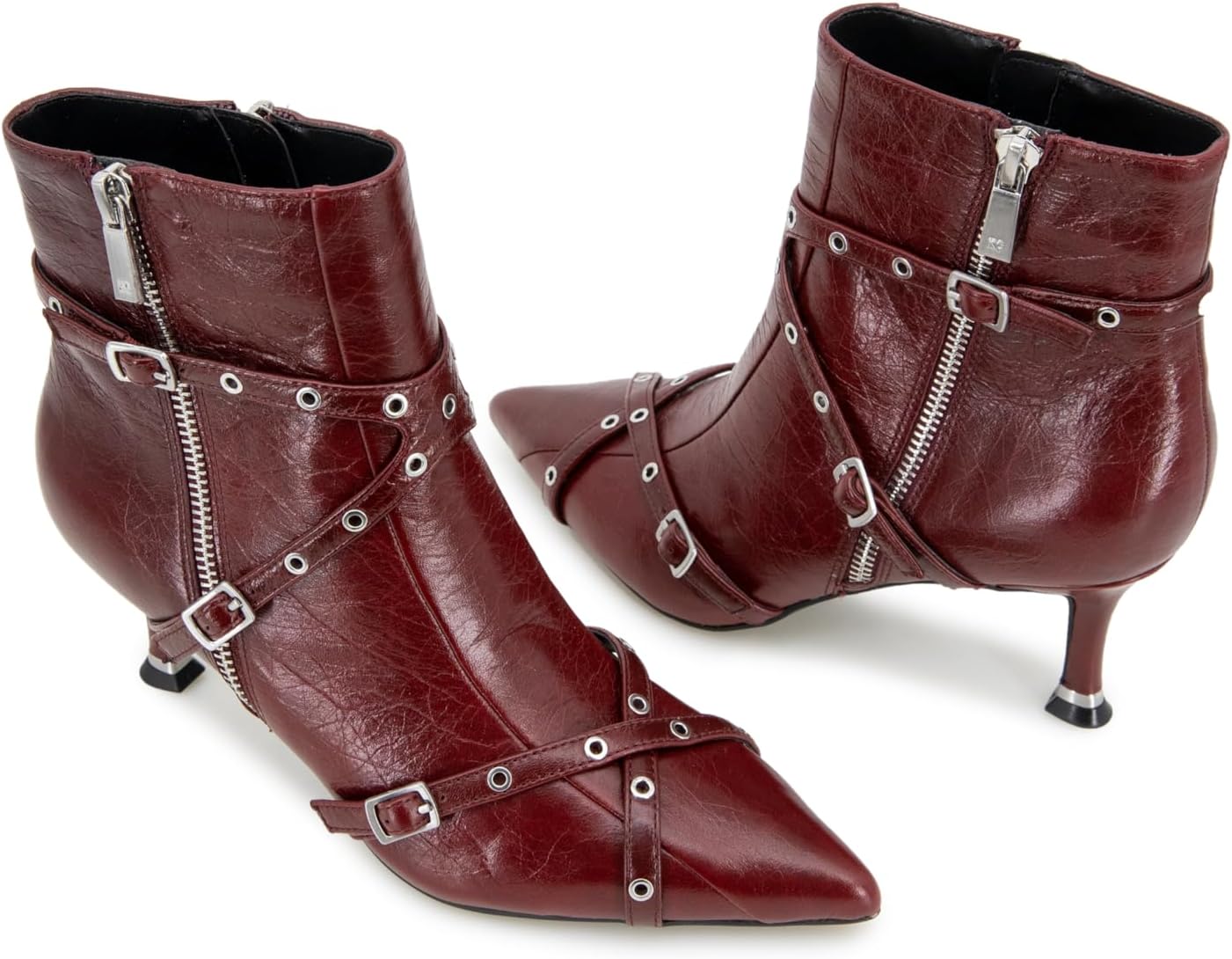 Kenneth Cole New York Umi Biker Bootie. Байкерские ботильоны на каблуке с заостренным носком и пряжками.
