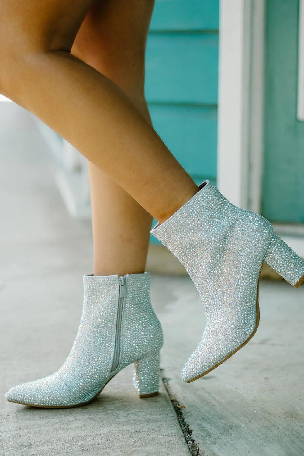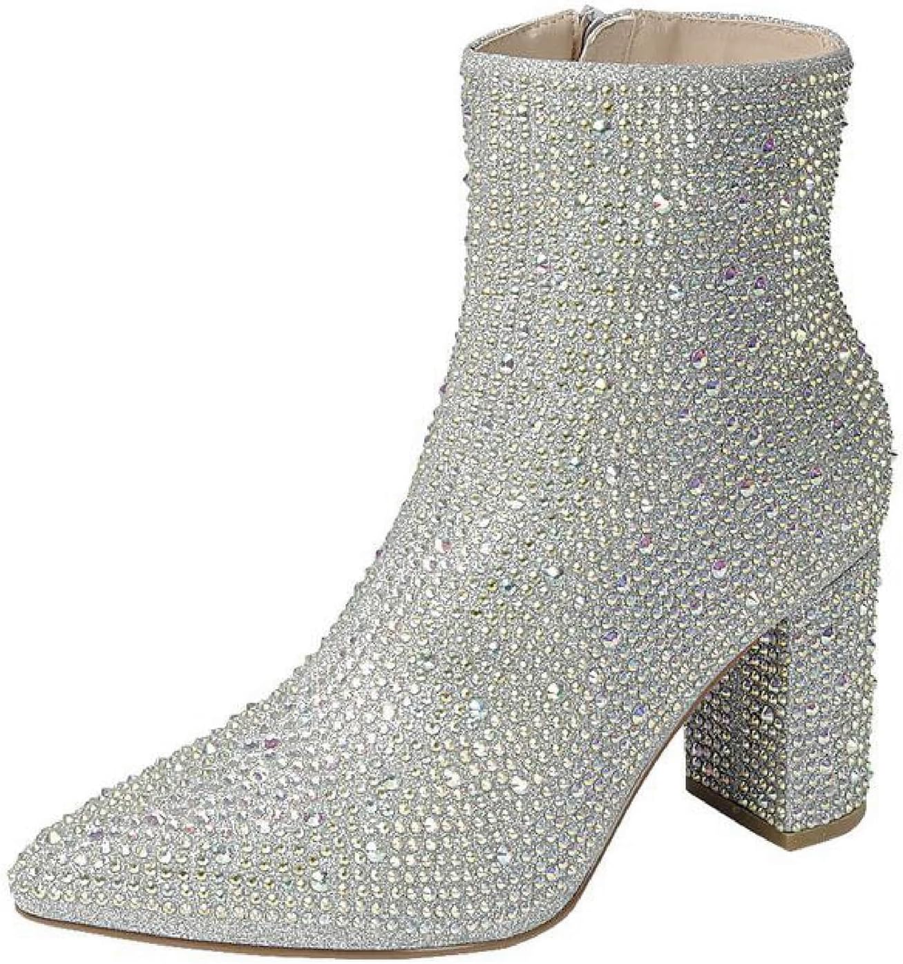 Женские ботильоны на толстом каблуке с блестками Forever, Silver