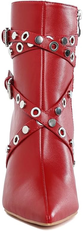 Ботинки обладают дерзким и смелым стилем с модными ремешками, что поднимает эстетику ботильонов на шпильке. Узкий расклешенный каблук добавляет интересный и игривый элемент, который гармонирует с силуэтом ботинок. Мягкие подкладочные стельки обеспечивают комфорт, а застежка-молния делает их удобными в ношении.
