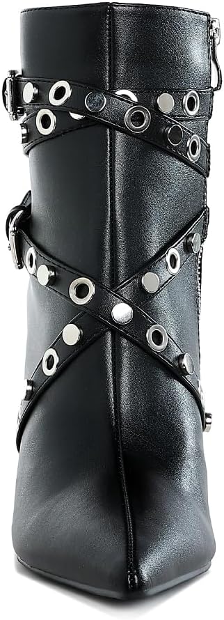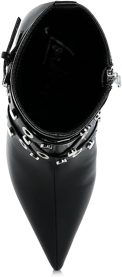 Ботинки обладают дерзким и смелым стилем с модными ремешками, что поднимает эстетику ботильонов на шпильке. Узкий расклешенный каблук добавляет интересный и игривый элемент, который гармонирует с силуэтом ботинок. Мягкие подкладочные стельки обеспечивают комфорт, а застежка-молния делает их удобными в ношении.