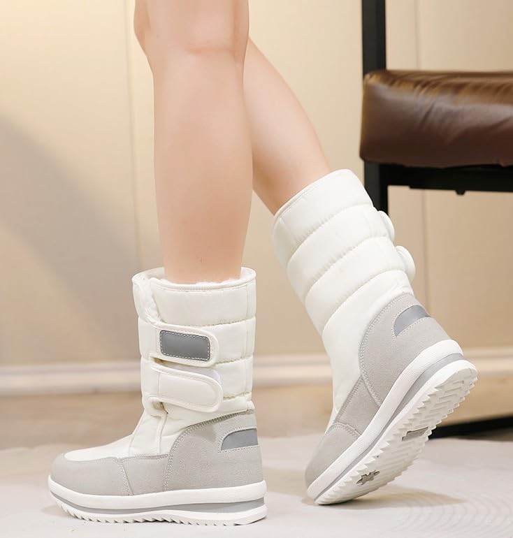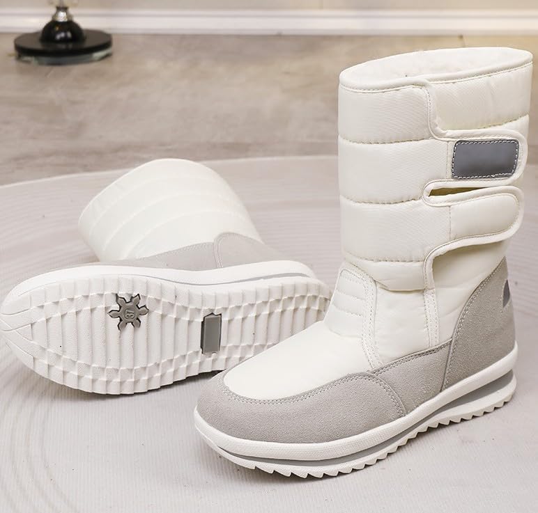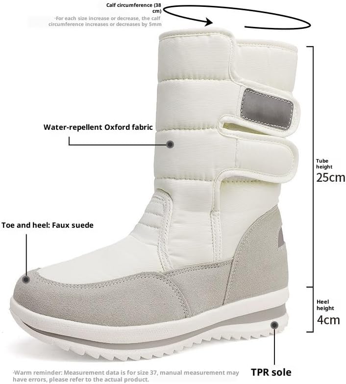 【Удобная и надежная застежка】: Сапоги оснащены застежкой на липучке, чтобы легко надевать и снимать их. Просто наденьте и снимите, и вы готовы выйти. Двойной ремешок регулируется для идеальной посадки, чтобы защитить от холода и снега. Сапоги средней длины. Сапоги можно отрегулировать для плотного прилегания и защиты от ветра и снега