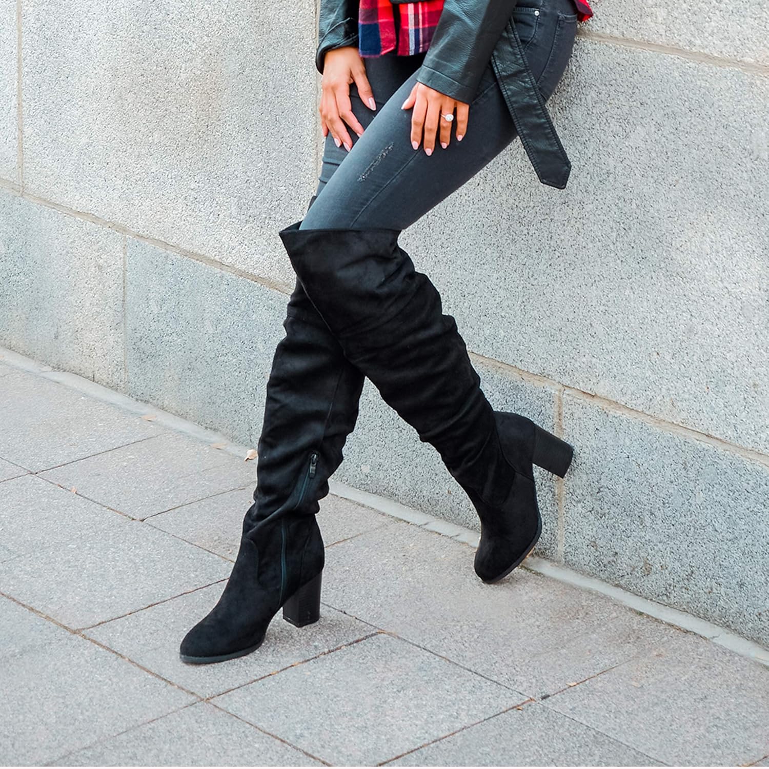 Ботфорты с драпировкой выше колена от Journee выполнены из мягкого искусственного замша, поднимаются выше колен и имеют рельефную переднюю часть, создающую стильный акцент. Закругленный носок и массивный высокий каблук завершает дизайн. В Journee наши модели ботинок сделают ваш образ еще более эффектным. Они станут завершающим штрихом, благодаря которому ваш наряд будет выглядеть так, словно со страниц модного журнала.