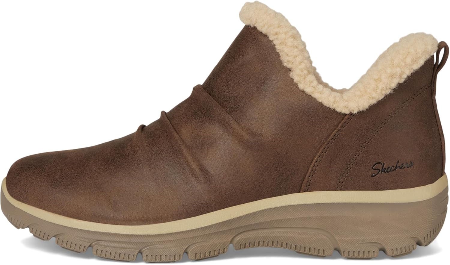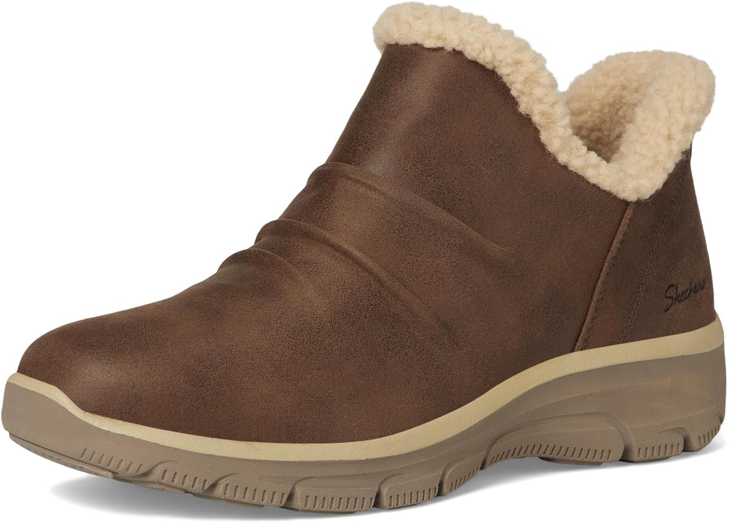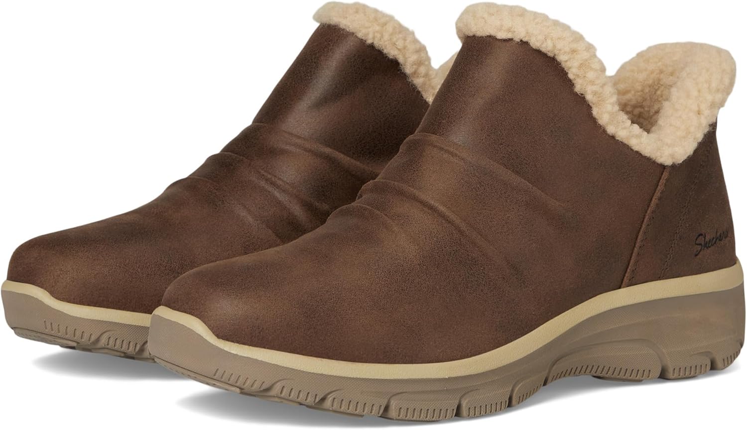 Погрузитесь в стиль и комфорт с ботильонами Relaxed Fit Easy Going Sweet Treasure на мемори-пене. Эти женские ботинки из мемори-пены сочетают моду и функциональность благодаря сборчатому воротнику и уютной отделке из шерпы. Верх из веганской кожи обработан водоотталкивающим средством Scotchgard, а стелька из воздушной мемори-пены обеспечивает исключительную амортизацию. Идеальные для повседневной носки, эти ботинки оснащены гибкой подошвой с хорошим сцеплением и удобным дизайном без шнурков для легкого создания стильного образа.