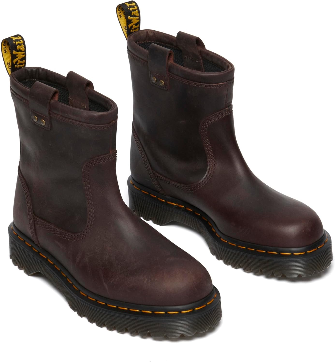 Черпая вдохновение из архива Dr. Martens, ботинки Anistone Lo на молнии сочетают в себе прочную конструкцию с выразительным силуэтом из высококачественной кожи. Фирменные металлические пластины, петля на пятке AirWair и традиционная желтая строчка по ранту подчеркивают стойкость и характер DM. Завершение