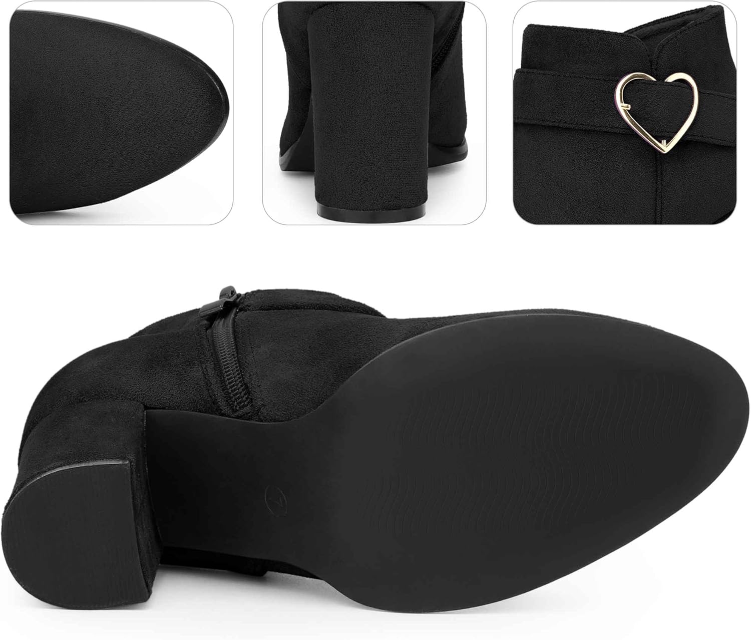 [Особенности]: круглый носок, устойчивый каблук, декор в виде сердечка на пряжке, легкая подкладка, классические ботильоны