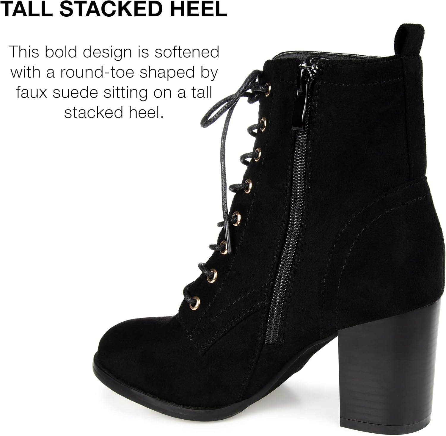 Ботильоны Journee Collection Baylor выполнены из искусственной кожи, имеют конструкцию на подъем с боковой молнией и шнуровкой, а также округлый носок. Подкладка из искусственных материалов. Легко набивная стелька. Каблук-блок.
