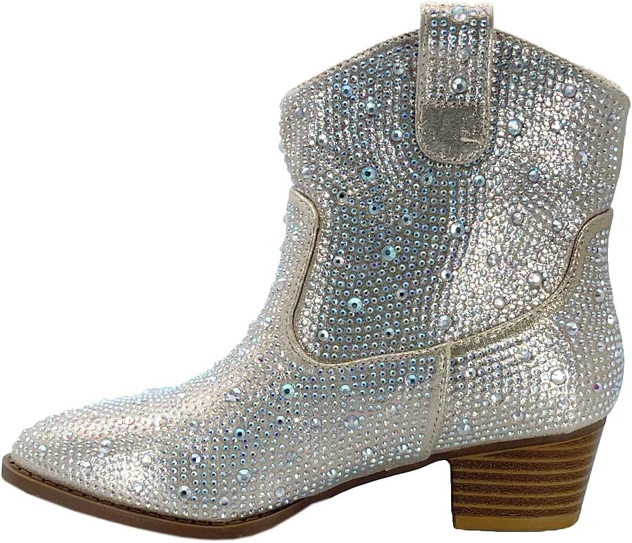 Ботильоны ABSOLEX с крупным каблуком и стразами, Champagne