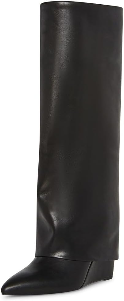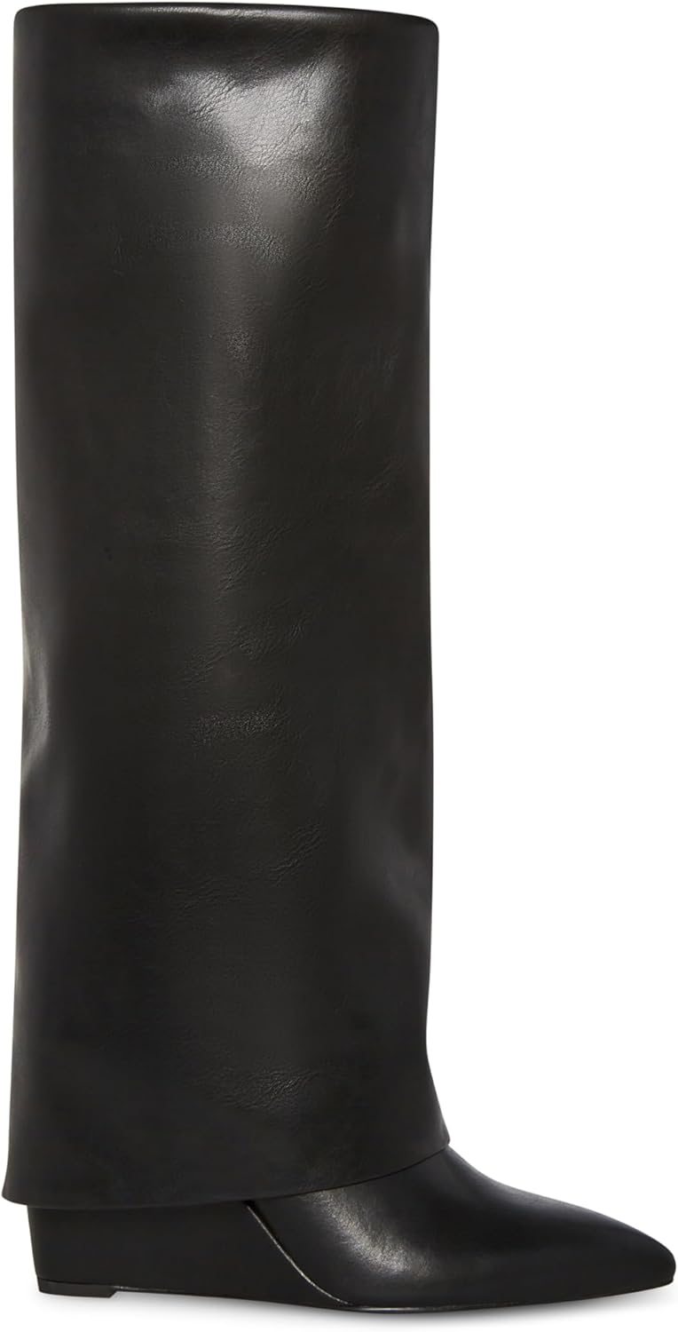 Сапоги EVANNDER создают изящный, но заметный силуэт с зажатым клиновидным каблуком, складчатой конструкцией и острой носочной частью, выглядывающей снизу. Современные и элегантные, эти сапоги можно носить как с нарядной, так и с повседневной одеждой, но они всегда привлекают внимание.