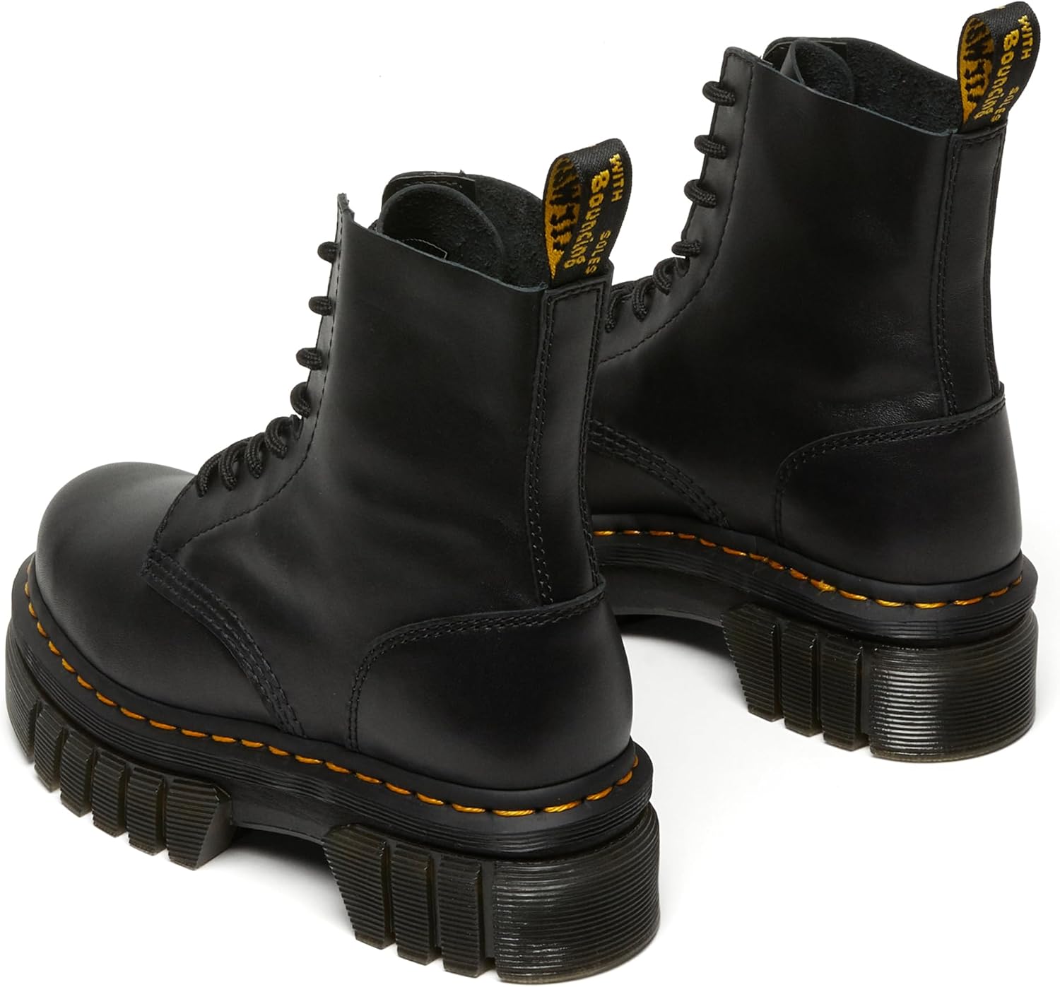 Высокая платформа. С повседневной носибельностью. Эти новые эволюционировавшие ботинки объединяют всю высоту знаменитой платформы Quad в современной легкой конструкции. Основанные на инновационной двухкомпонентной подошве - легкой промежуточной подошве из EVA и наружной подошве из ПВХ с массивными глубокими шипами - они дают меньше веса и больше харизмы. DM на полную мощность.